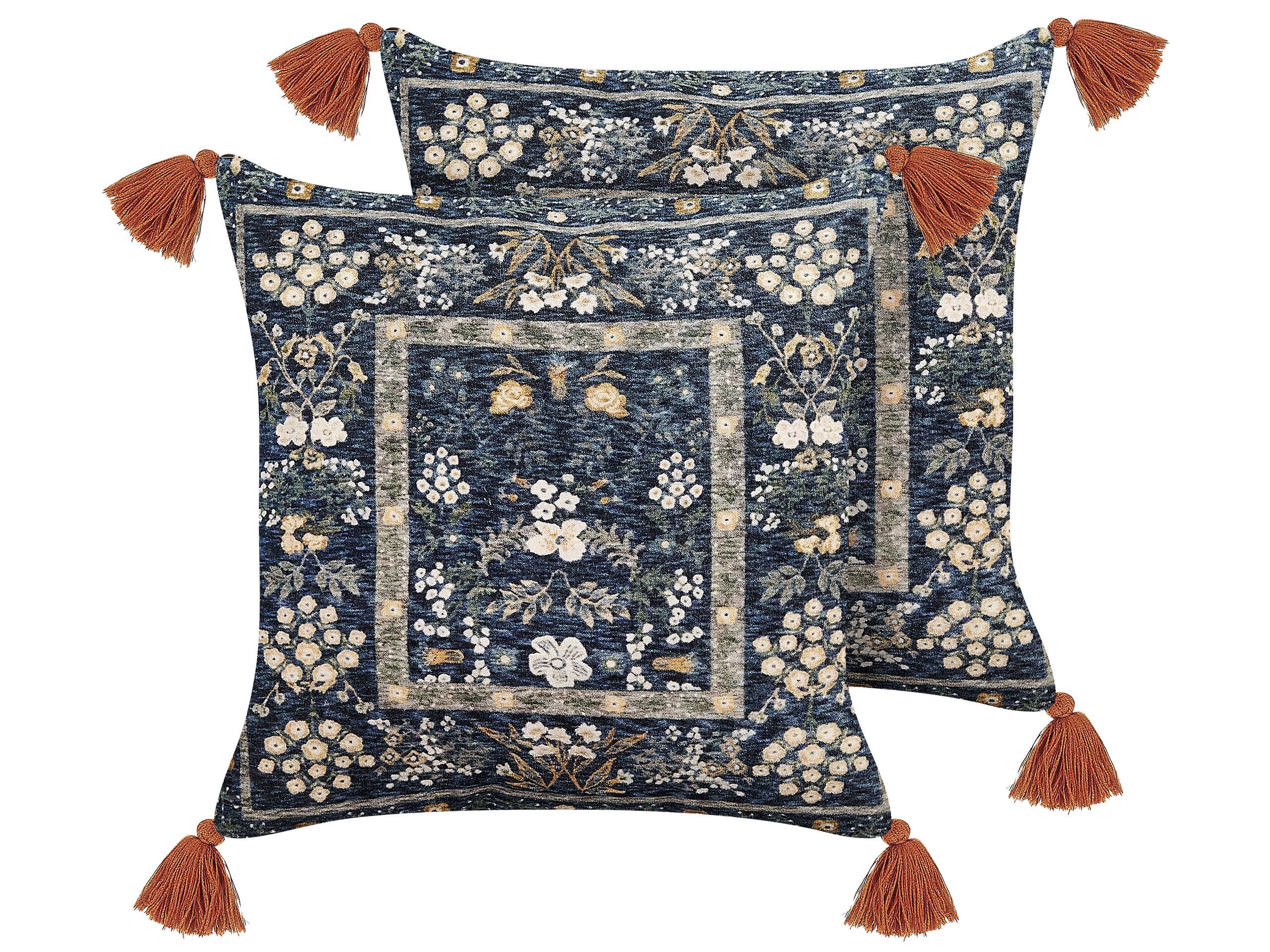 Set of 2 Velvet Cushions Floral Pattern with Tassels 45x45cm Multicolour