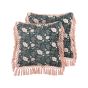 Set of 2 Velvet Cushions Flower Pattern with Tassels 45x45cm Blue and Pink