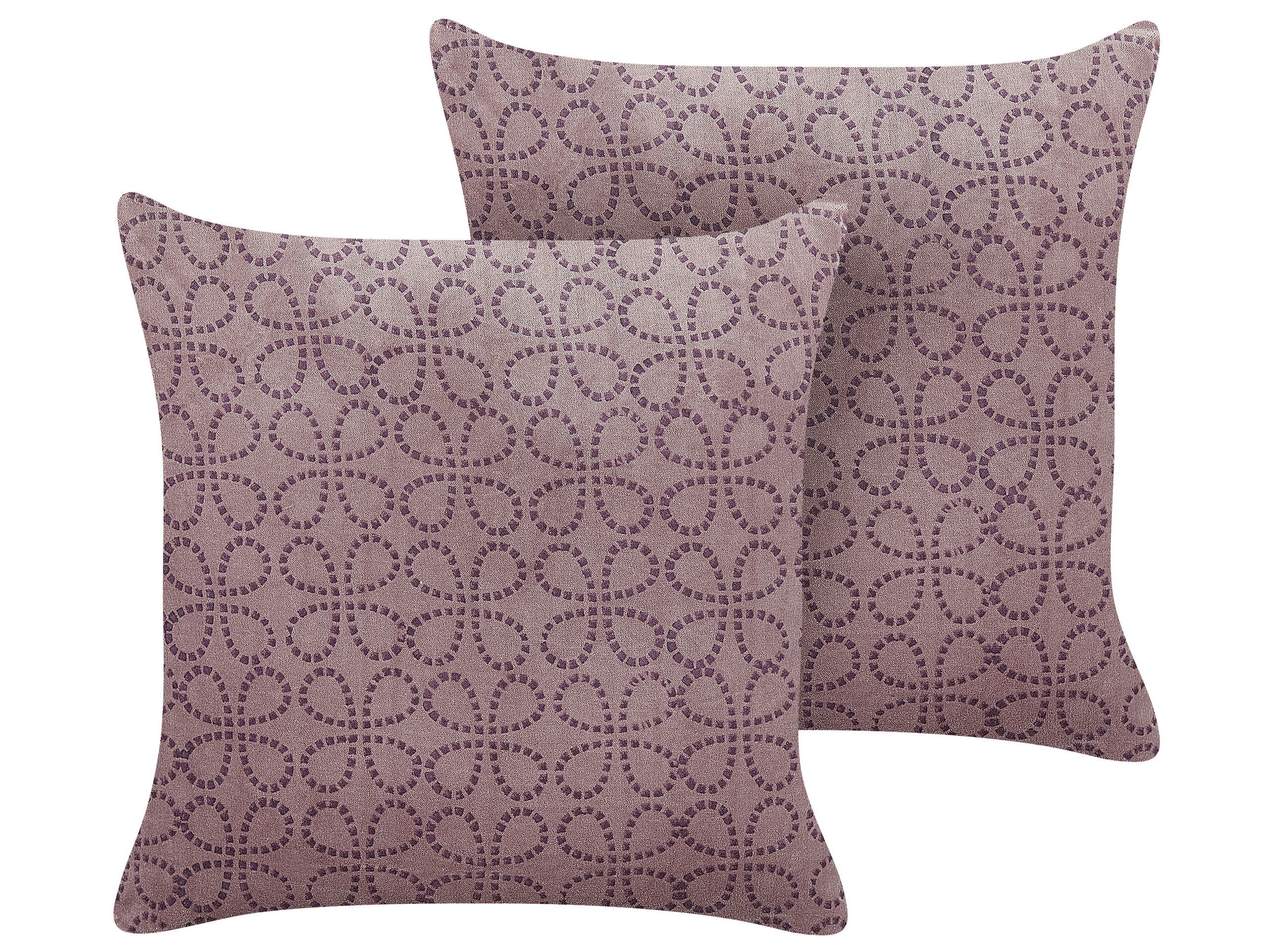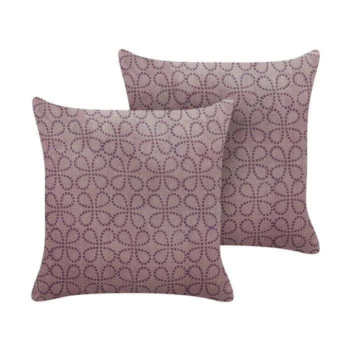 Set of 2 Velvet Cushions Geometric Pattern 45x45cm Pink