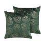 Set of 2 Velvet Cushions Leaf Pattern 45x45cm Dark Green