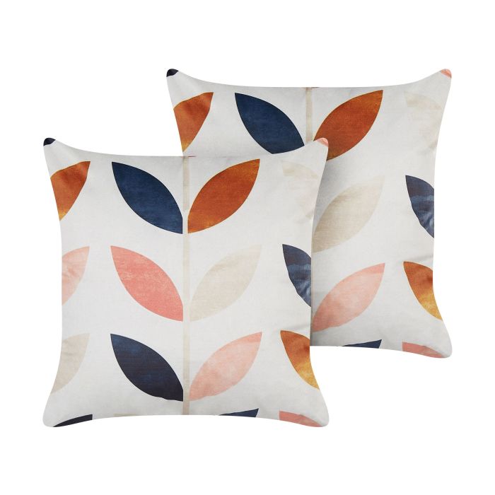 Set of 2 Velvet Cushions Leaf Pattern 45x45cm Off - White