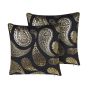 Set of 2 Velvet Cushions Paisley Pattern 45x45cm Gold and Black