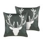 Set of 2 Velvet Cushions Reindeer Motif 45x45cm Green
