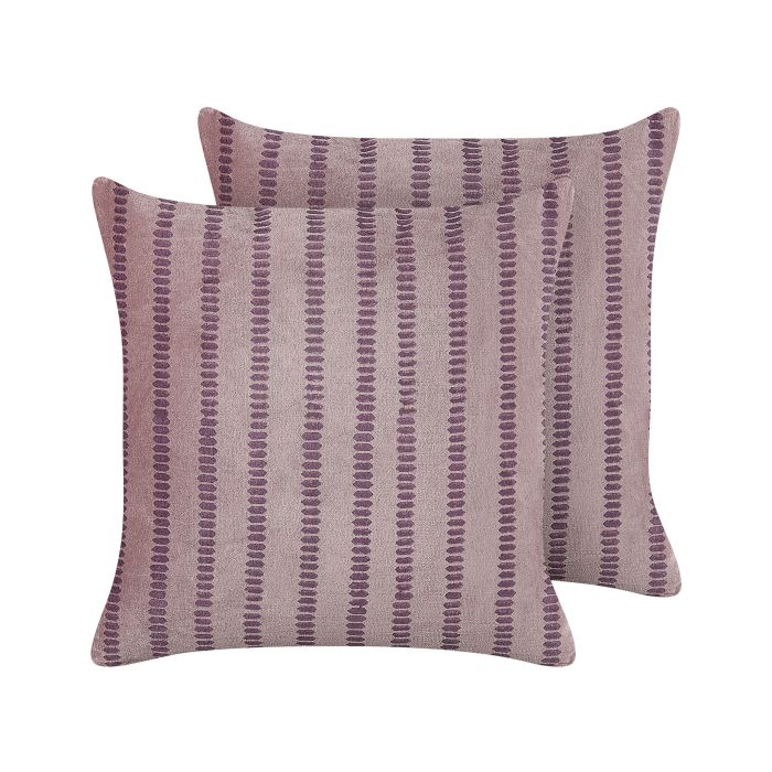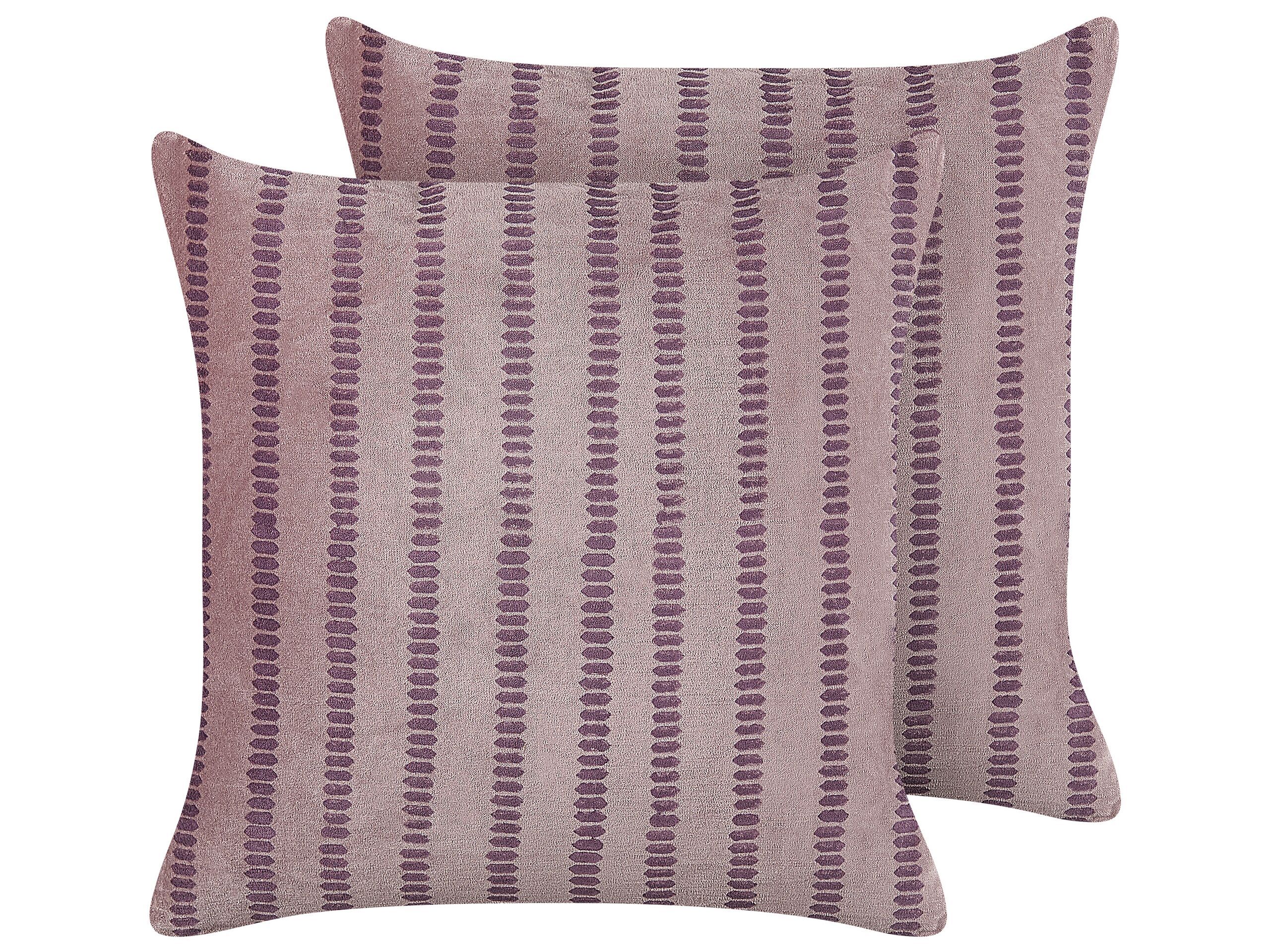 Set of 2 Velvet Cushions Striped 45x45cm Pink