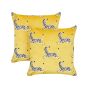 Set of 2 Velvet Cushions Zebra Pattern 45x45cm Yellow