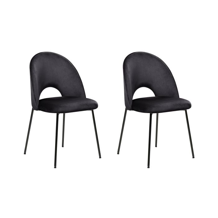 Introduce a retro vibe to your interior with this set of stylish chairs. Thickly padded and upholstered in pleasant to touch velvet, they feature four thick black metal legs that add character to any dining set set-up. Combined with a streamlined backrest with a decorative gap, it underlines both modern and traditional arrangements. Details: Color: Black. Main material: Velvet. Additional material: Metal. Material Composition: 100% Polyester Weight: 6 Assembly: Partial Assembly Required Weight Capacity: 120 Padding Thickness: 5 Seat Height: 48