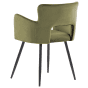 These chairs are all about modern design, they present a retro-inspired silhouette mixed with functionality, high-quality materials and comfort. A padded seat comes with armrests and a backrest with eye-catching cut-out detail. The smooth velvet upholstery gives depth and sheen to the colour, complementing slanted, powder-coated black legs. Vertical tufting on the inner back lends chairs an elegant touch. With that universal design, this seat would look fantastic by the dining table in a home office or bedroom. Details: Color: Green, Black. Main material: Velvet. Additional material: Iron. Material Composition: 100% Polyester Weight: 6 Assembly: Legs to be Fitted Weight Capacity: 120 Padding Thickness: 4 Seat Height: 43