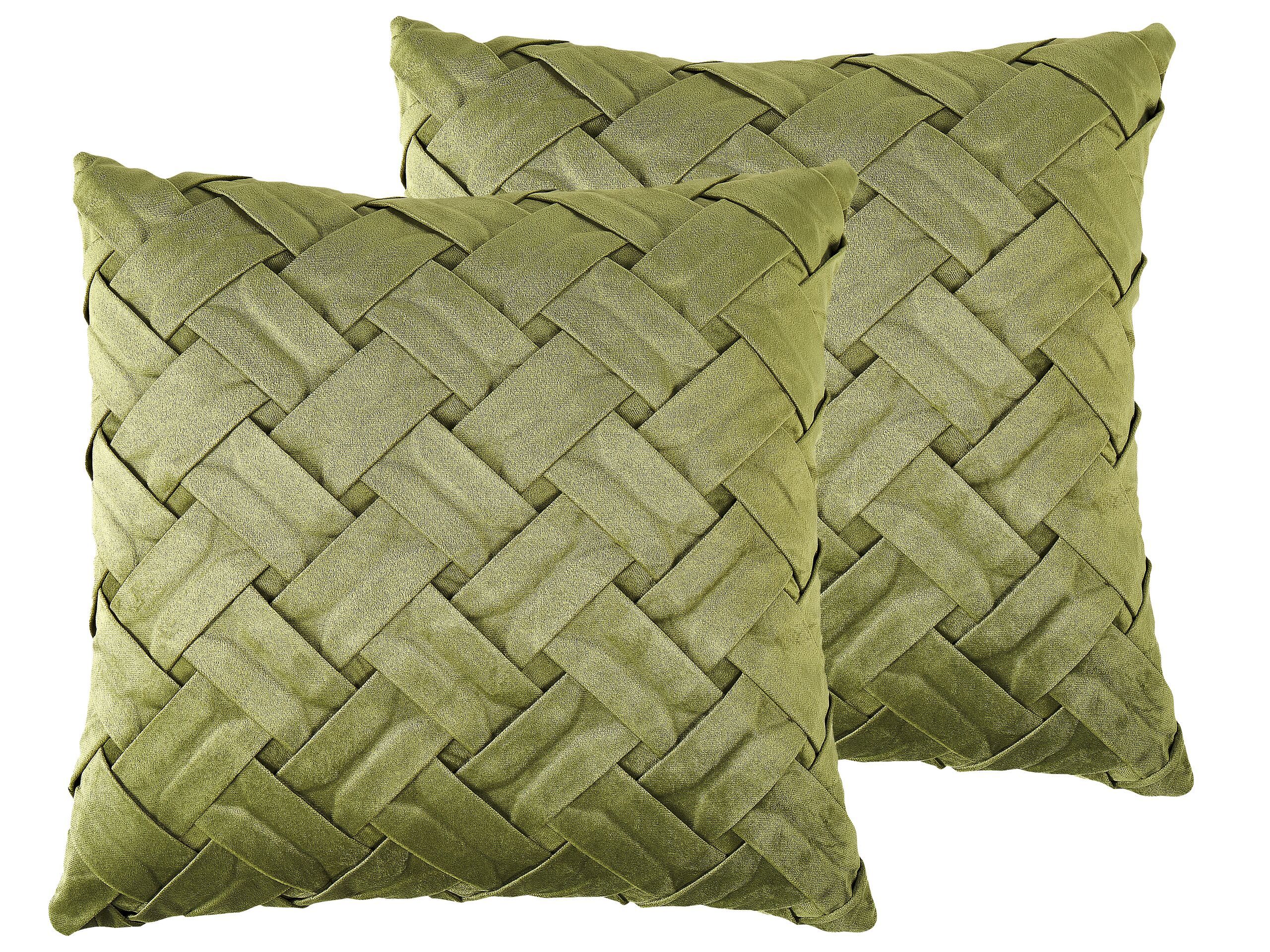 Set of 2 Velvet Pleated Cushions 43x43cm Green