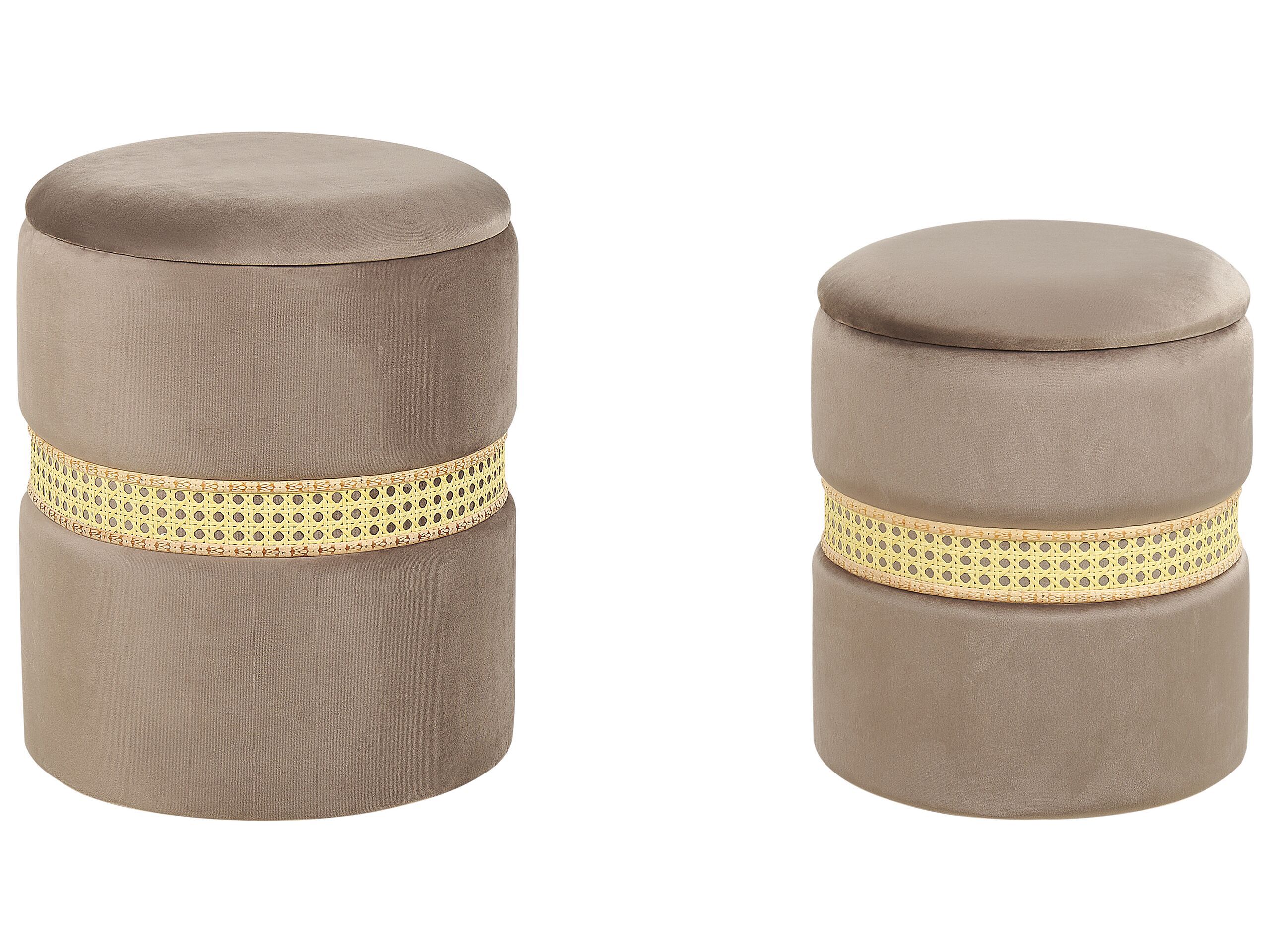 Set of 2 Velvet Storage Pouffes Taupe MEDFORD