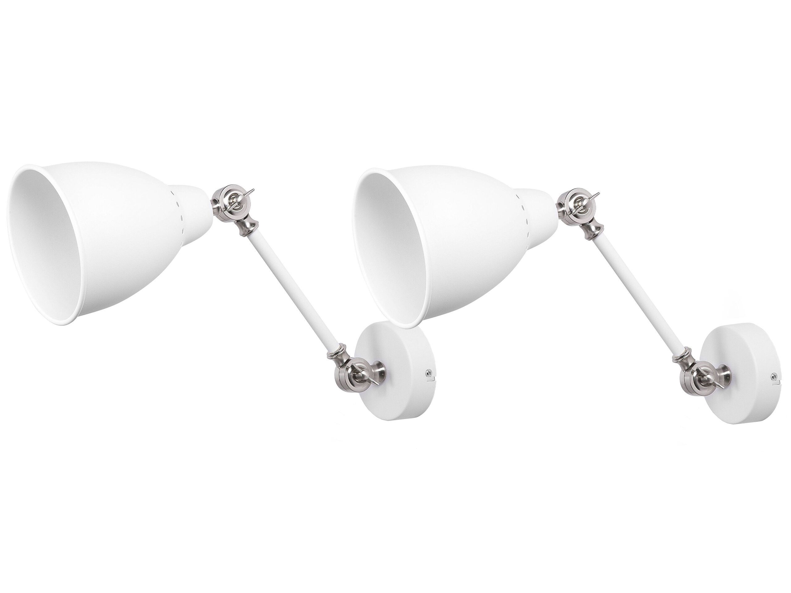 These wall lamps feature arms adjustable in two points as well as flexible shades, making them a perfect choice as task or accent lighting. Equipped with an adjustable arm, they allow you to freely adjust the direction of the light for maximum comfort of use. They are made of metal for durability, and their classic design makes them fit perfectly into any modern interior. Details: Color: White, Silver. Main material: Metal. Weight: 1 Assembly: Requires Installation