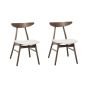 This set of two dining chairs will impress you with its retro-inspired look and feel. The natural wood frame and beautiful white faux leather upholstery will complement any interior. A high, curved backrest encourages proper posture, while the quality materials ensure durability and timeless elegance. Combine the chairs with a matching table and enjoy a stylish, comfortable and inviting dining space. Details: Color: White, Dark Wood. Main material: Rubberwood. Additional material: Faux Leather. Material Composition: 100% PU Leather Weight: 5 Assembly: Full Assembly Required Wood type: Hevea brasiliensis Wood Origin: Malaysia Weight Capacity: 100 Seat Height: 43