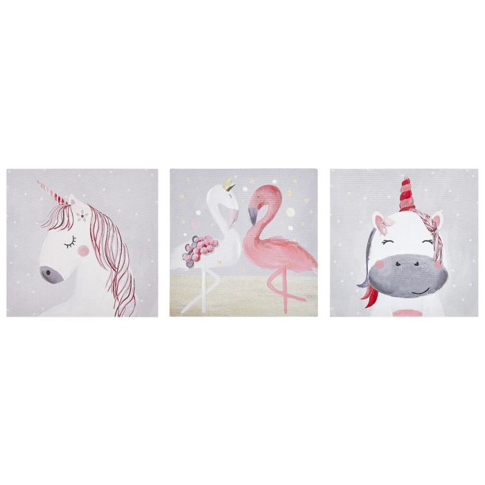 Set of 3 Animals Canvas Art Prints 30 x 30 cm Grey and Pink TIMIA