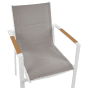 This set of garden chairs is a perfect seating solution if you want to spend your time outdoor with friends and family. Each chair is upholstered with thick layer of material for both backrest and seat, which guarantees comfort of usage. What is more, the chairs are made of high quality aluminium thanks to which they have sturdy construction and can be used outside freely. Enjoy warm days relaxing on these chairs.