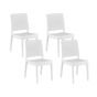 Enjoy summer afternoons outside and complete your garden table with this set of four stackable chairs. The set is made out of an extremely easy to care and low maintenance synthetic material, resistant to adverse weather conditions. Thanks to the minimalistic design, the chairs will serve you for years to come and look perfect on a modern terrace, especially when set with soft outdoor cushions. Details: Color: White. Main material: Synthetic Material. Weight: 4 Assembly: Does Not Require Assembly Weight Capacity: 150 Seat Height: 43
