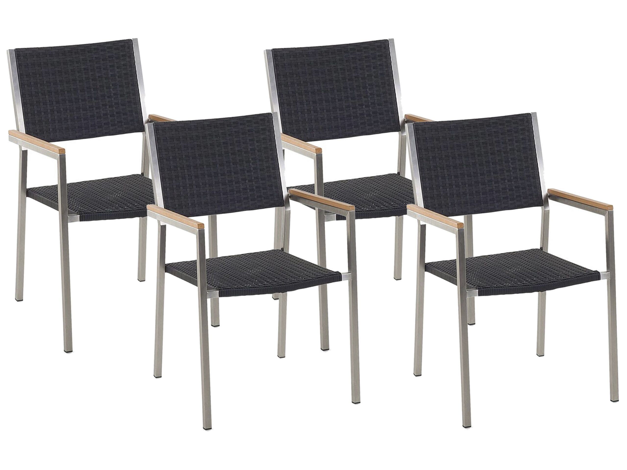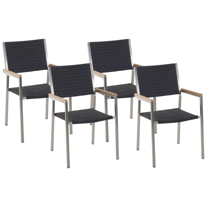Set of 4 PE Rattan Garden Chairs Black GROSSETO