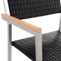 This outdoor chair set is the perfect choice for a dining spot in your garden. The frame is made from stainless steel to ensure stability, while wooden armrests protect your body from cold metal. The seat and backrest are crafted from black synthetic rattan providing maximum comfort. Lean back and enjoy the sun in this chair. Details: Color: Black, Silver. Main material: PE Rattan. Additional material: Plastic Wood, Stainless Steel. Weight: 7 Assembly: Does Not Require Assembly Weight Capacity: 160 Seat Height: 44