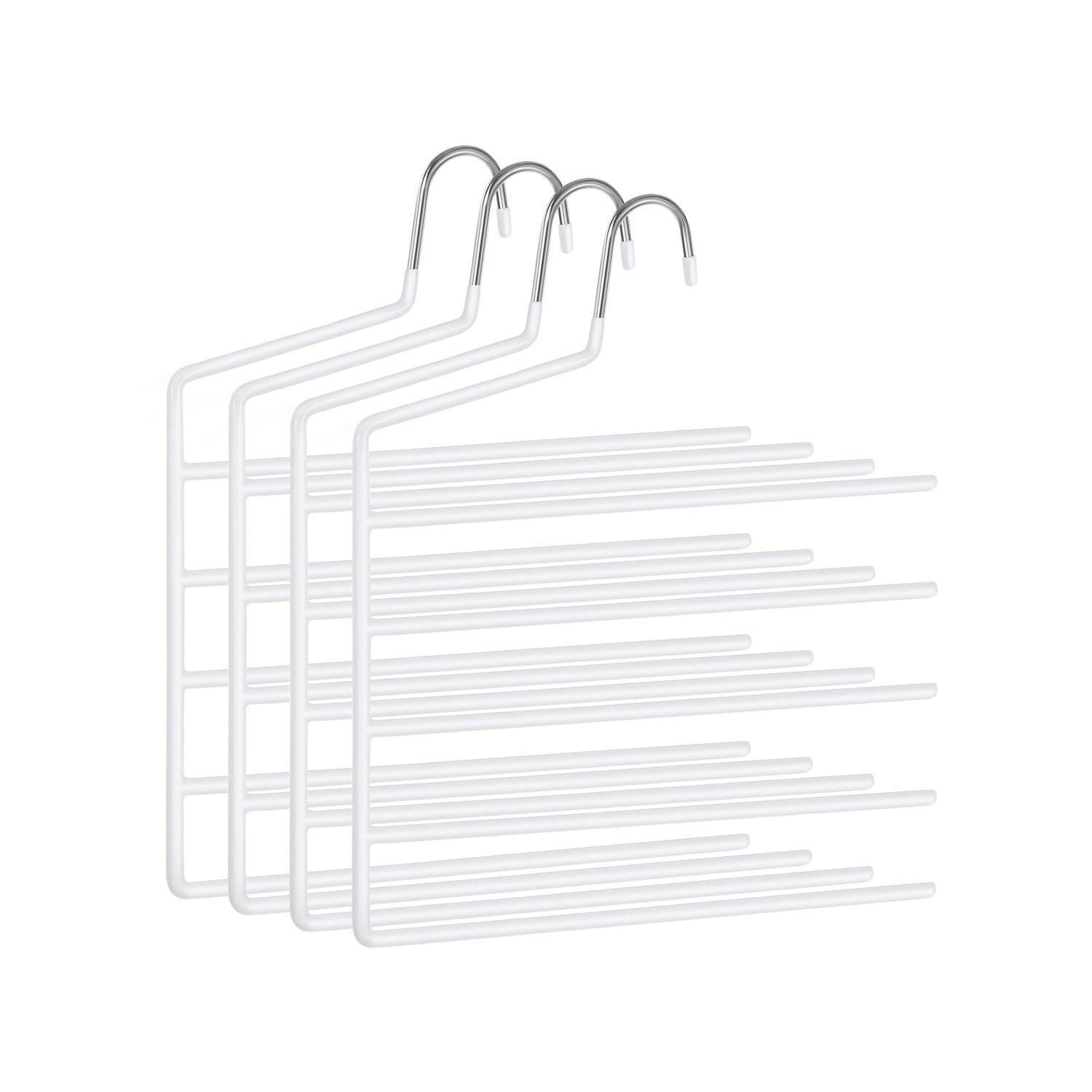 Here's Where These Space-Saving Hangers Shine:- Clever 5-tier design to hang 5 pairs of trousers on 1 hanger;- Made of metal, each hanger can hold up to 4 kg;- Anti-slip coating on each bar prevents clothes from slipping;- Ideal for storing trousers, ties, scarves, and other accessories.