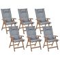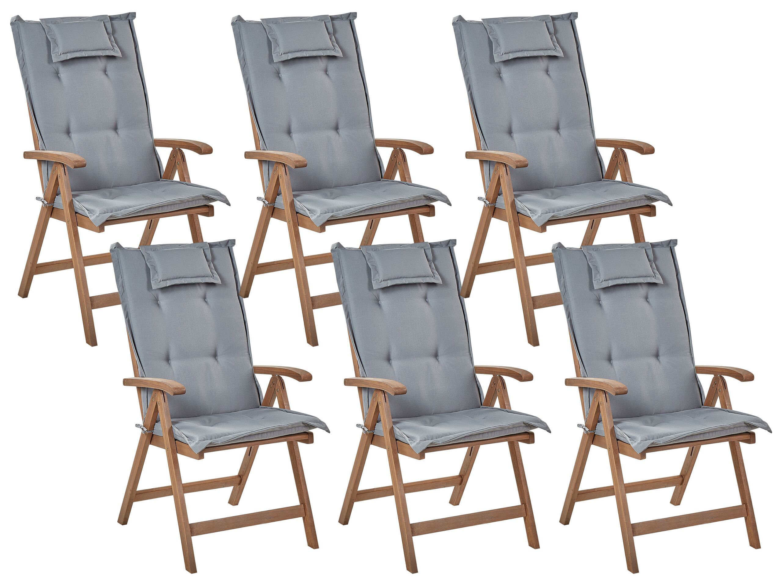 Set of 6 Acacia Wood Garden Folding Chairs Dark Wood with Grey Cushions AMANTEA