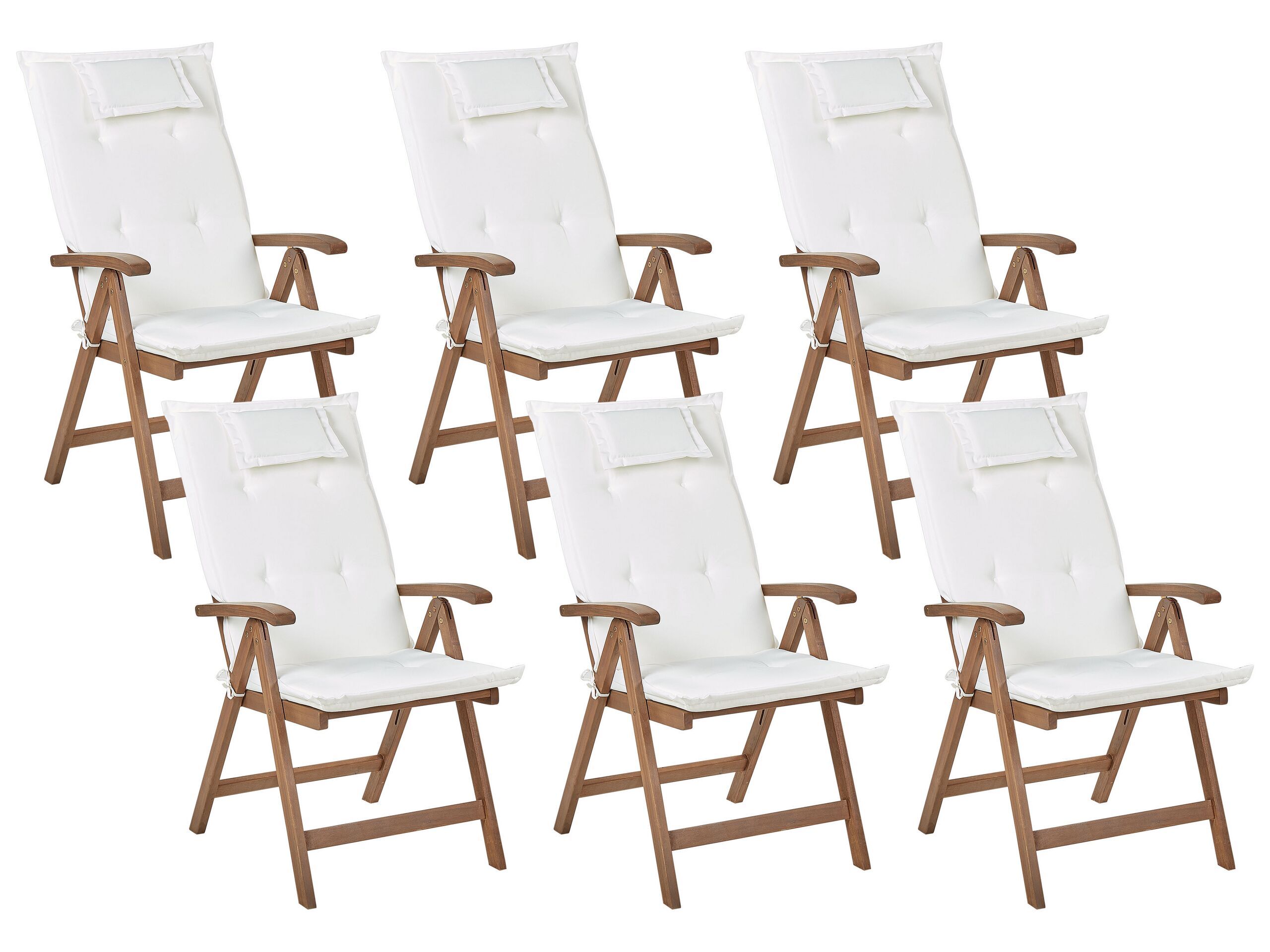 Set of 6 Acacia Wood Garden Folding Chairs Dark Wood with Off-White Cushions AMANTEA