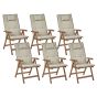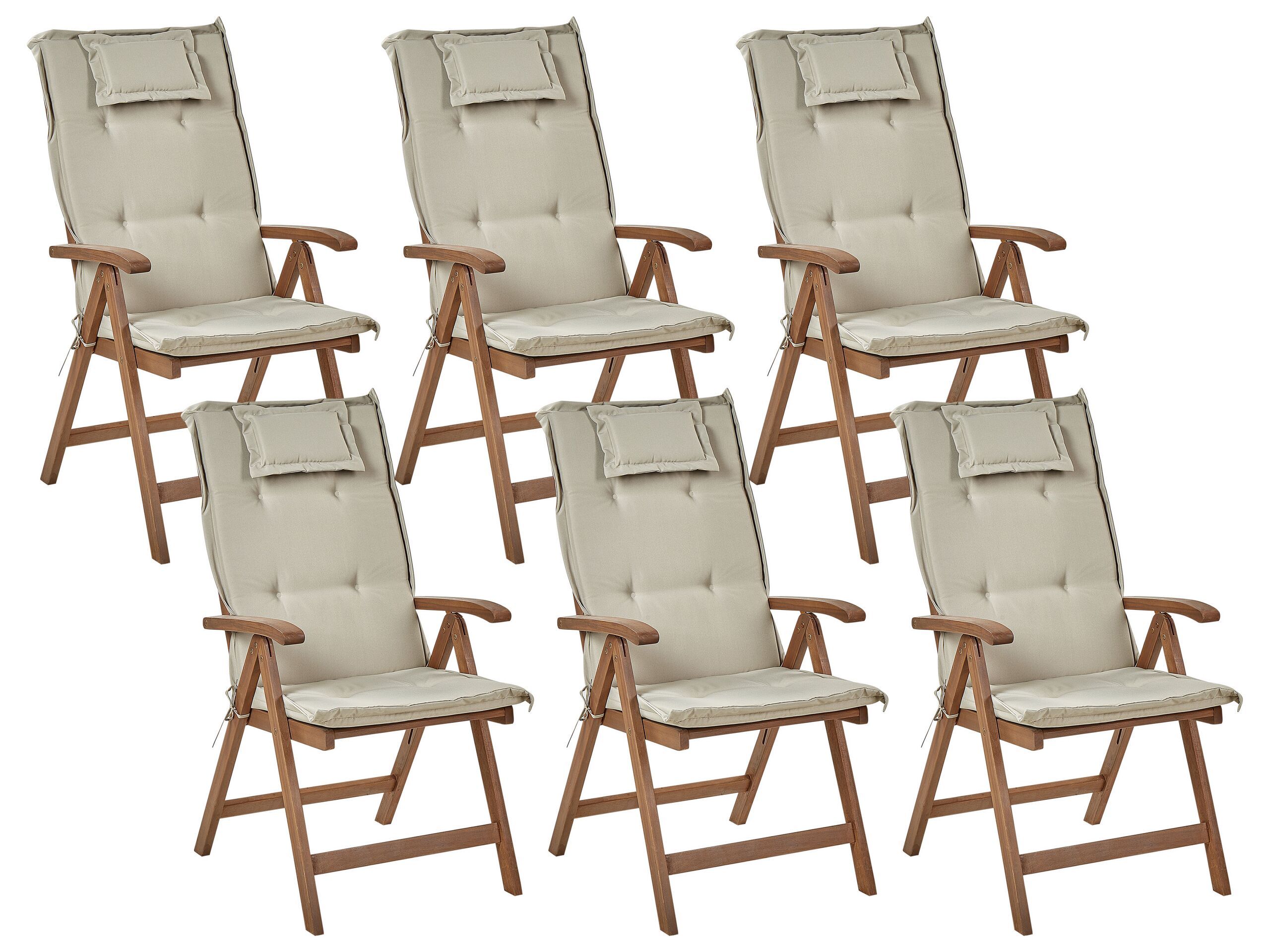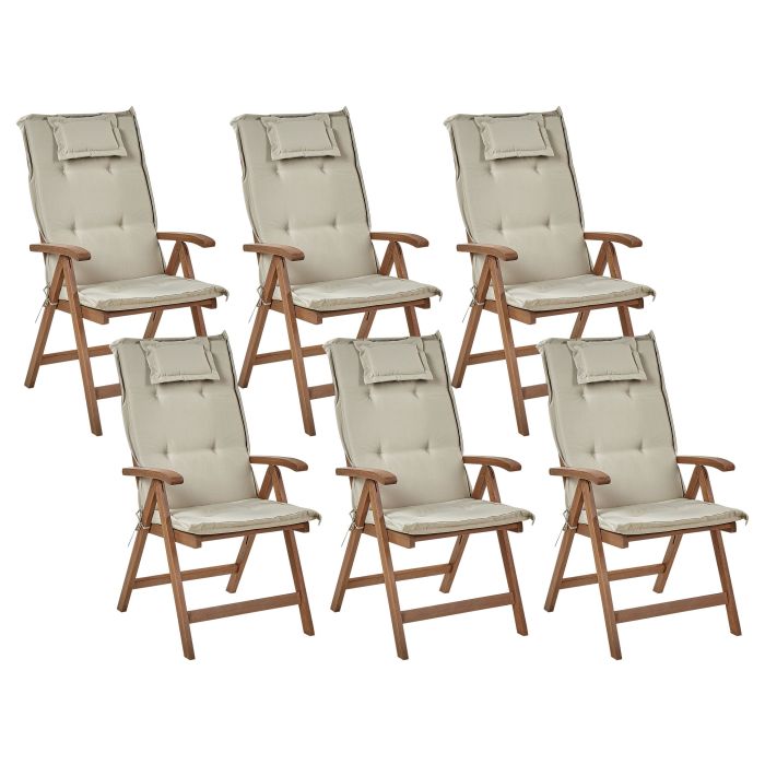 Set of 6 Acacia Wood Garden Folding Chairs Dark Wood with Taupe Cushions AMANTEA
