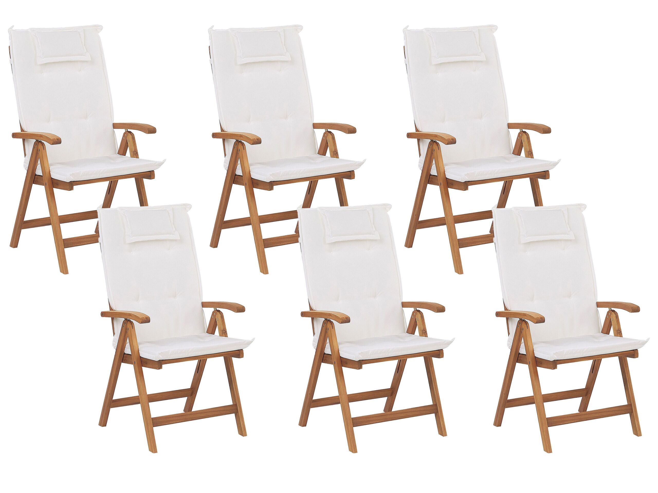 Set of 6 Acacia Wood Garden Folding Chairs with Off-White Cushions JAVA