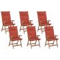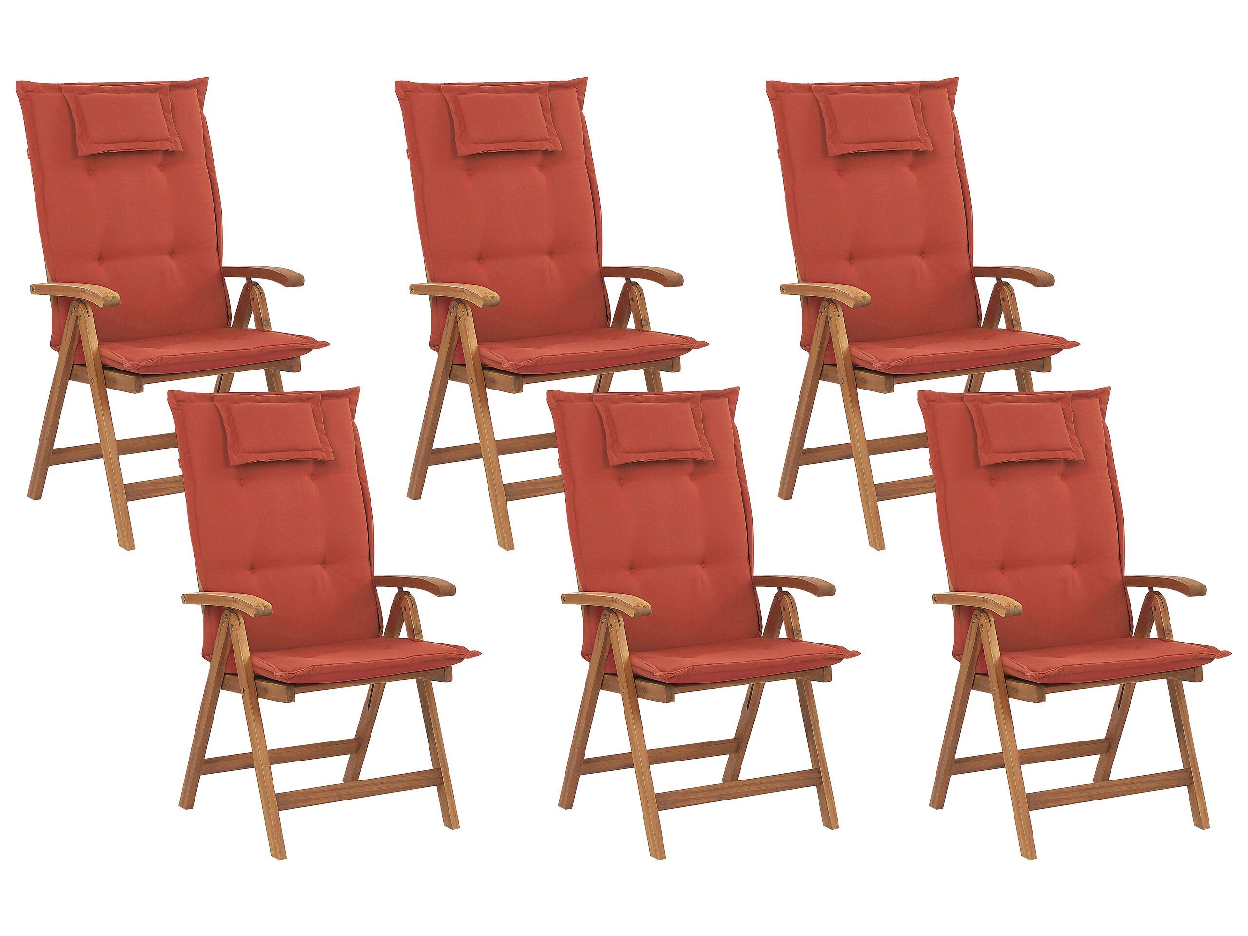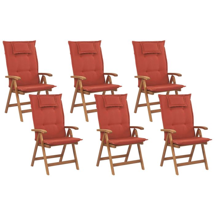 Set of 6 Acacia Wood Garden Folding Chairs with Red Cushions JAVA