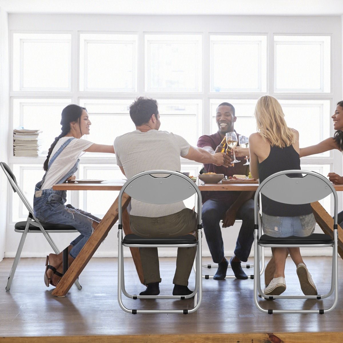 Set of 6 Folding Chair with Padded Seat and Stable U-shaped Frame for Office/Party/Conference/Dining Room