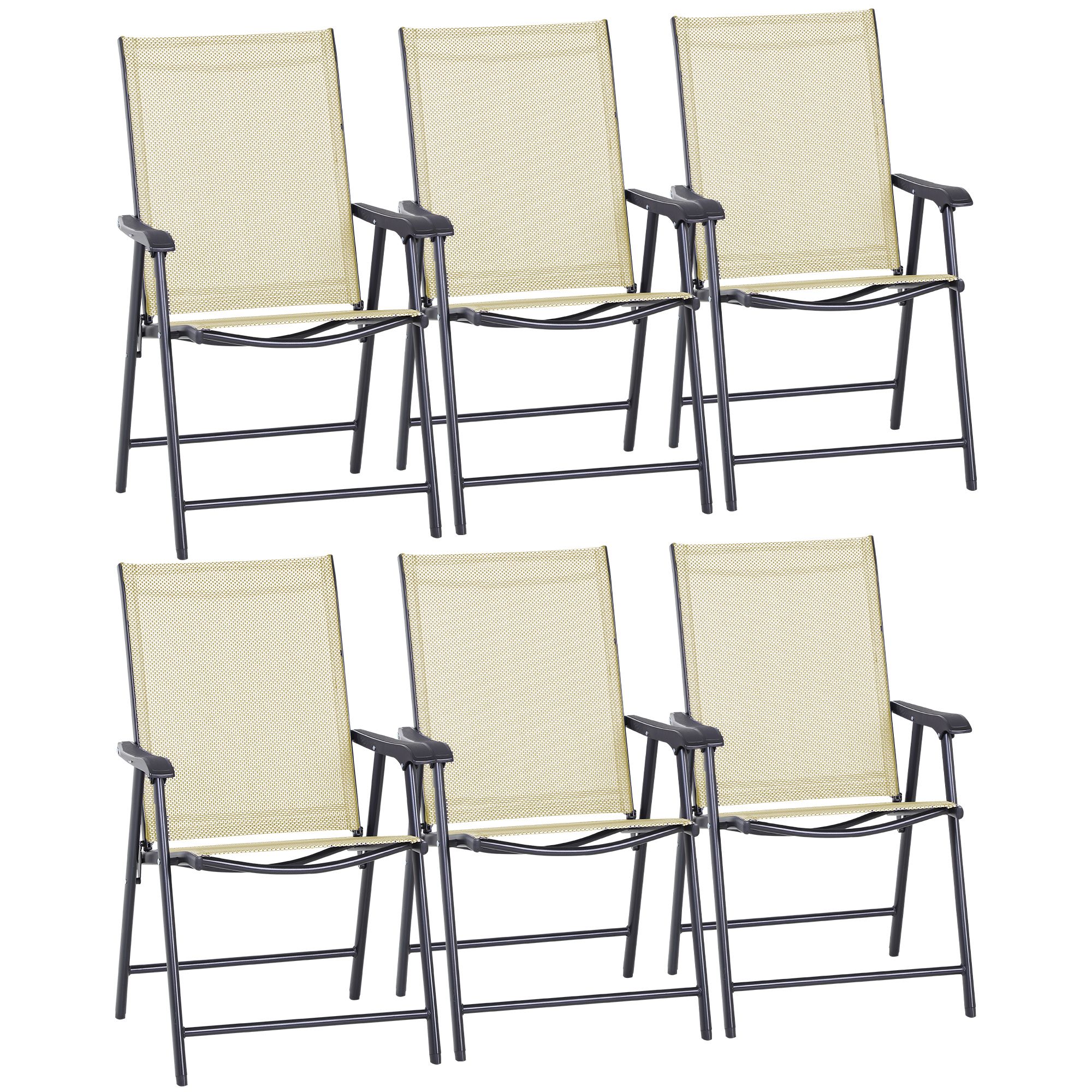 Set of 6 Folding Garden Chairs, Metal Frame Garden Chairs Outdoor Patio Park Dining Seat with Breathable Mesh Seat, Beige