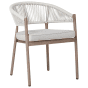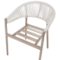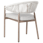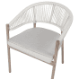 This set of 6 elegant garden chairs is crafted from durable aluminium, finished with a heat transfer print that beautifully mimics the natural look of wood, bringing a touch of sophistication to your outdoor space. The heat transfer finish not only adds a stunning wood-like appearance but also enhances its resistance to the elements, making it ideal for outdoor settings. The chairs feature backrests woven with sturdy synthetic rope, adding a modern design element, while the comfortable seat cushions come with removable covers for easy cleaning. Built to withstand the elements, these chairs are UV and rust-resistant, ensuring long-lasting durability. Plus, their stackable design makes them practical for convenient storage when not in use.