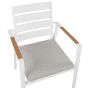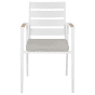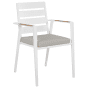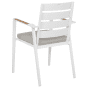Dine in style with these elegant, garden chairs. Made of high quality materials, they are perfect for outdoor use and require little maintenance. Slim legs, slatted backrest and wood-like accent on the armrests make these chairs a minimalist yet modern piece of furniture that will match any outdoor area, from garden to patio and terrace.