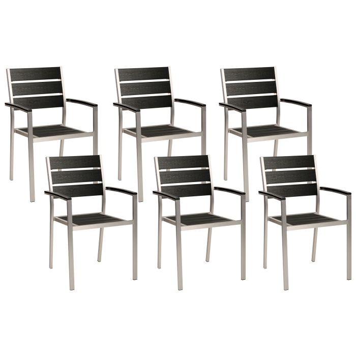 Set of 6 Garden Dining Chairs Black with Silver VERNIO