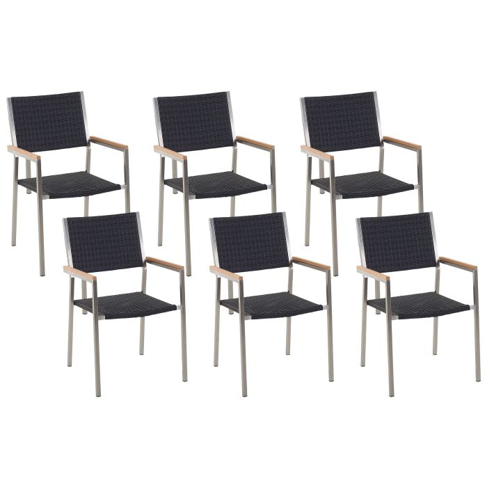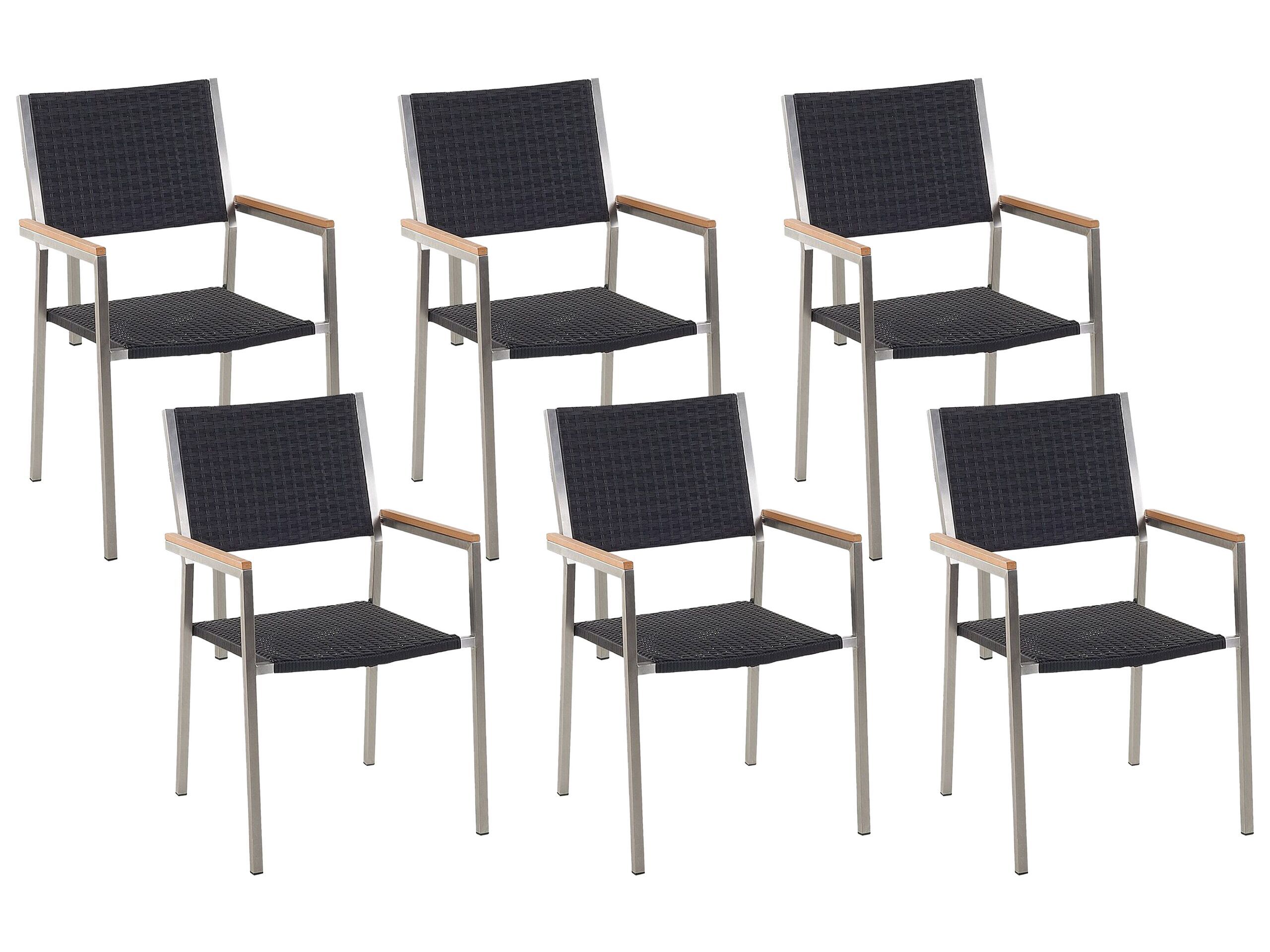 Set of 6 PE Rattan Garden Chairs Black GROSSETO