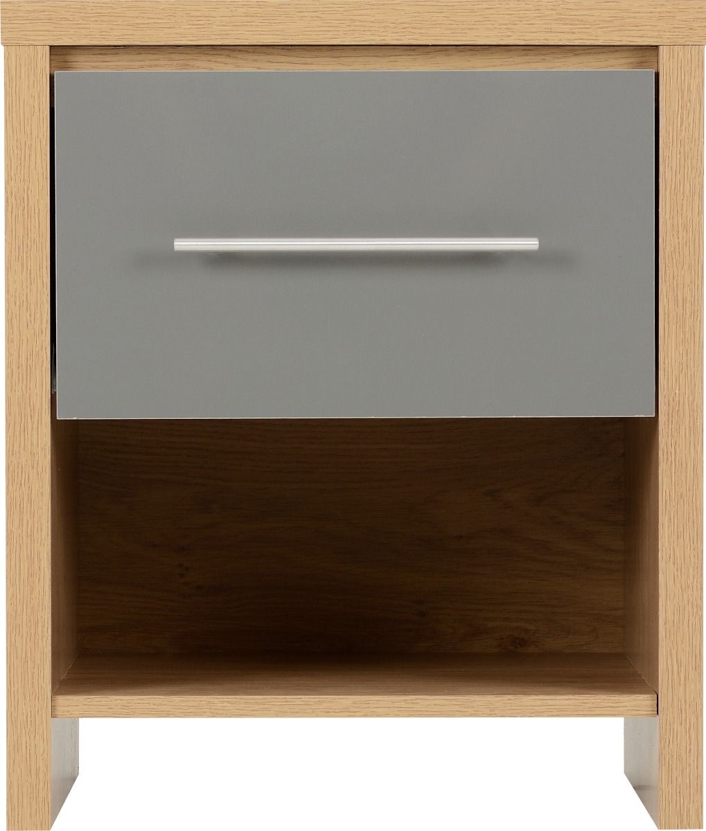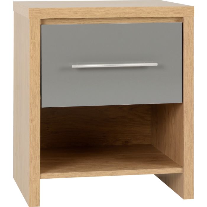 Seville 1 Drawer Bedside - Grey High Gloss Light Oak Effect Veneer