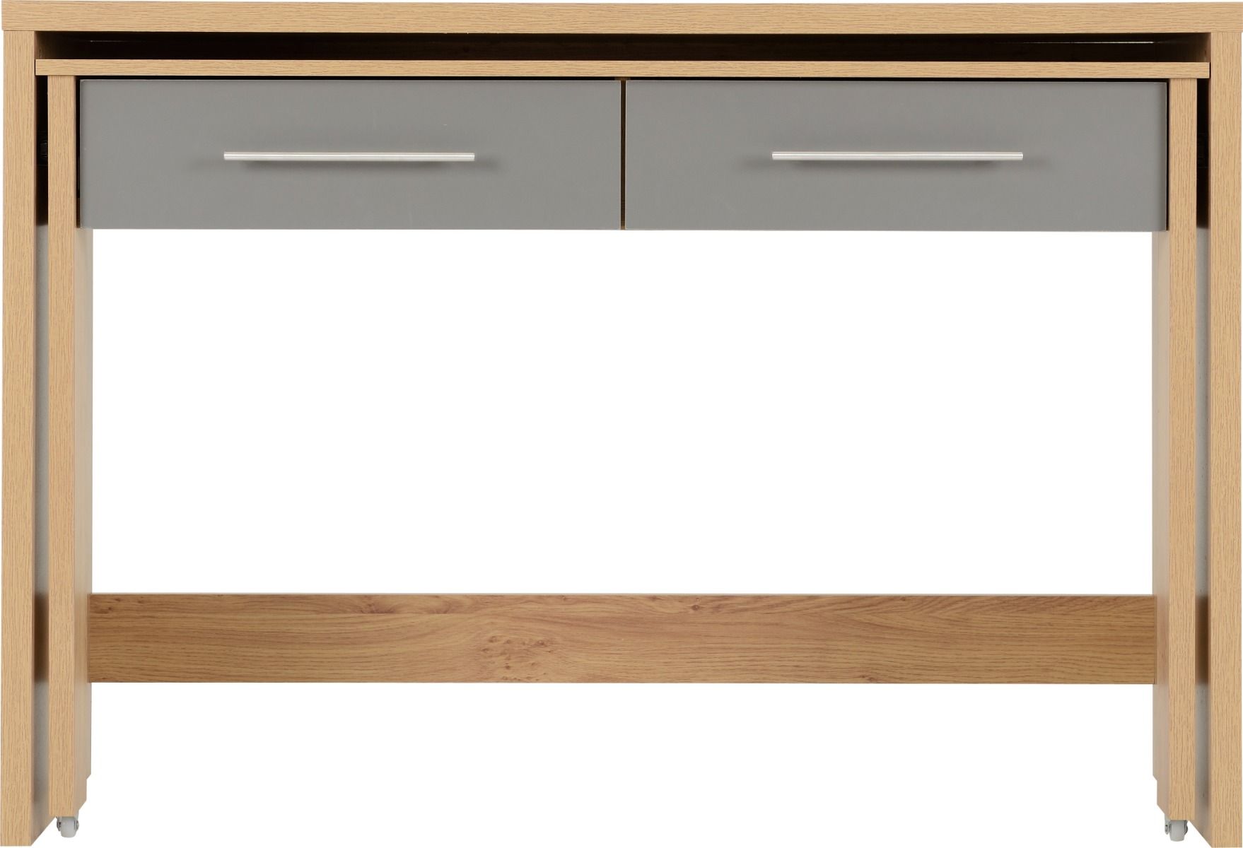 Seville 2 Drawer Slider Desk - Grey High Gloss Light Oak Effect Veneer