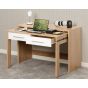 Seville 2 Drawer Slider Desk - White High Gloss Light Oak Effect Veneer