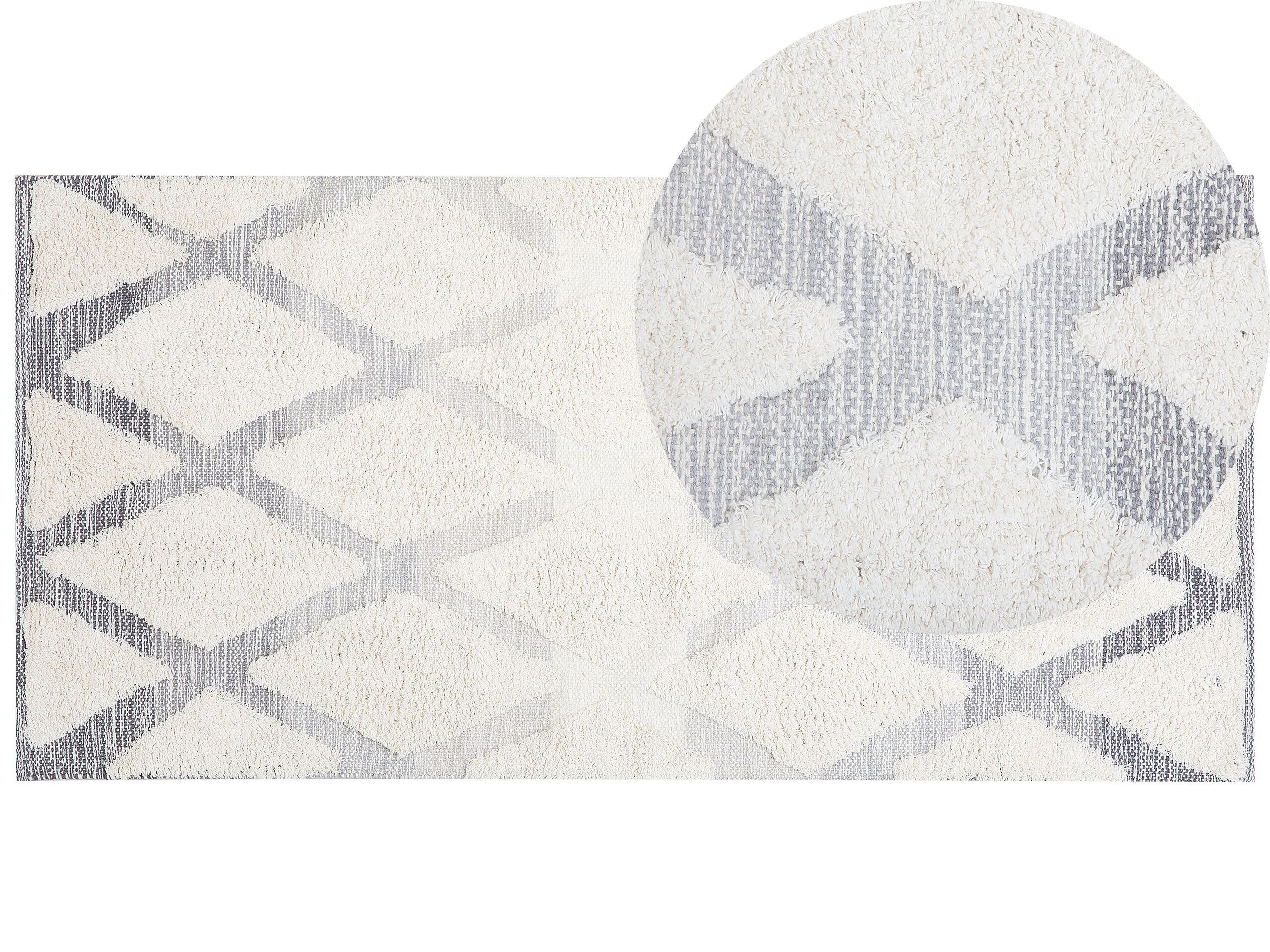 Up your interior design game with this stylish and modern rug. Made from cotton and with a high pile treatment, this rug is at once extremely pleasant to the touch and durable, ready to last for years even in the most foot trafficked areas. It features a decorative, traditional diamond pattern, adding a vintage flair to this eye-catching piece. Boasting a subtle, soft beige hue, this item will instantly match a variety of décors and interiors. Details: Color: Beige, Grey. Main material: Cotton. Material Composition: 100% Cotton Weight: 2 Assembly: Does Not Require Assembly