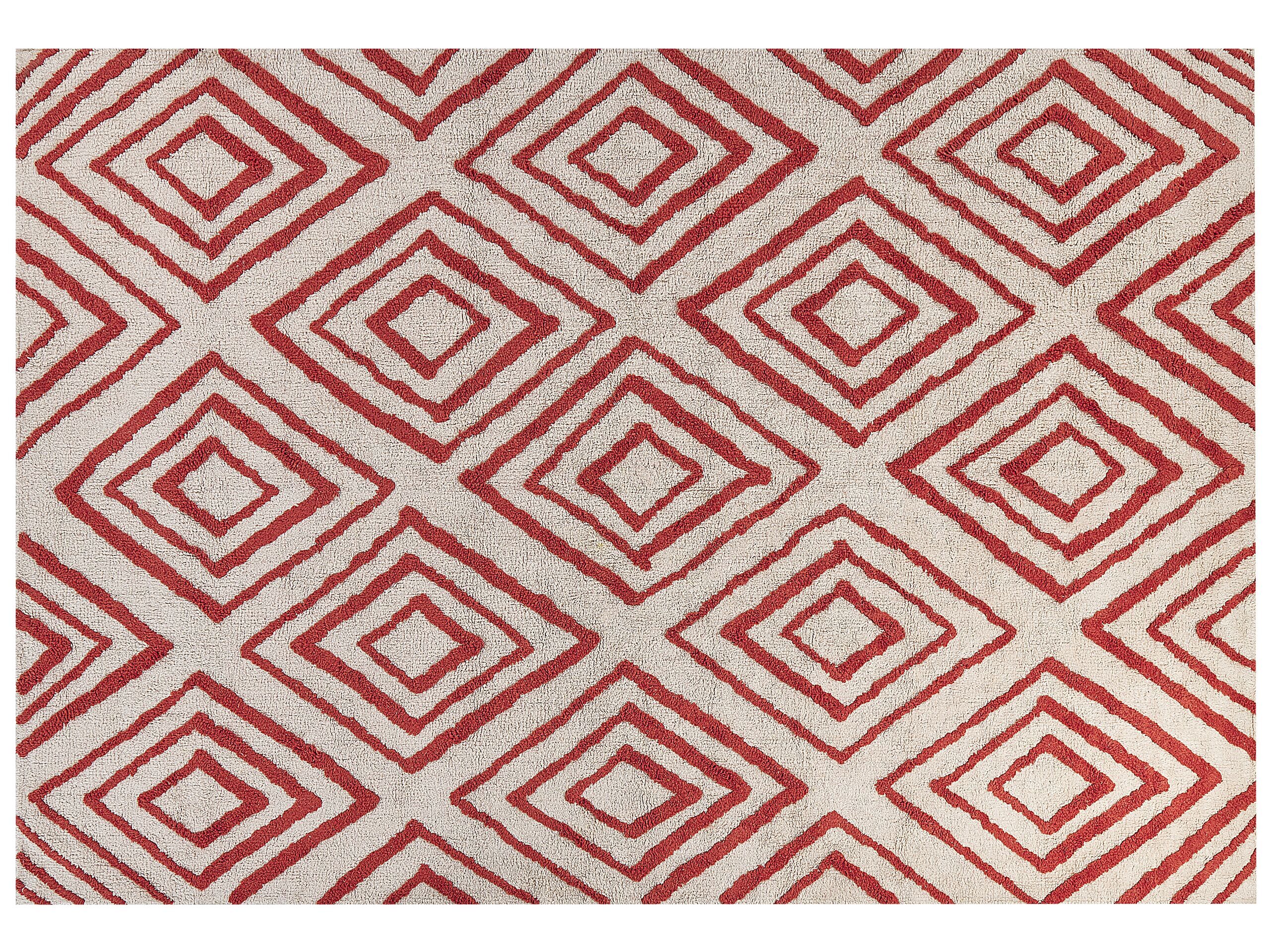 Introduce this boho, modern rug to your living space to instantly refresh your interior. The accessory is made out of high-quality cotton, and additionally, it was handwoven, so every piece from this collection is going to be unique. Thanks to the material used, it is also very pleasant to touch, so it's going to be perfect in any traffic-heavy area. Details: Color: White, Red. Main material: Cotton. Material Composition: 100% Cotton Weight: 6.7 Assembly: Does Not Require Assembly