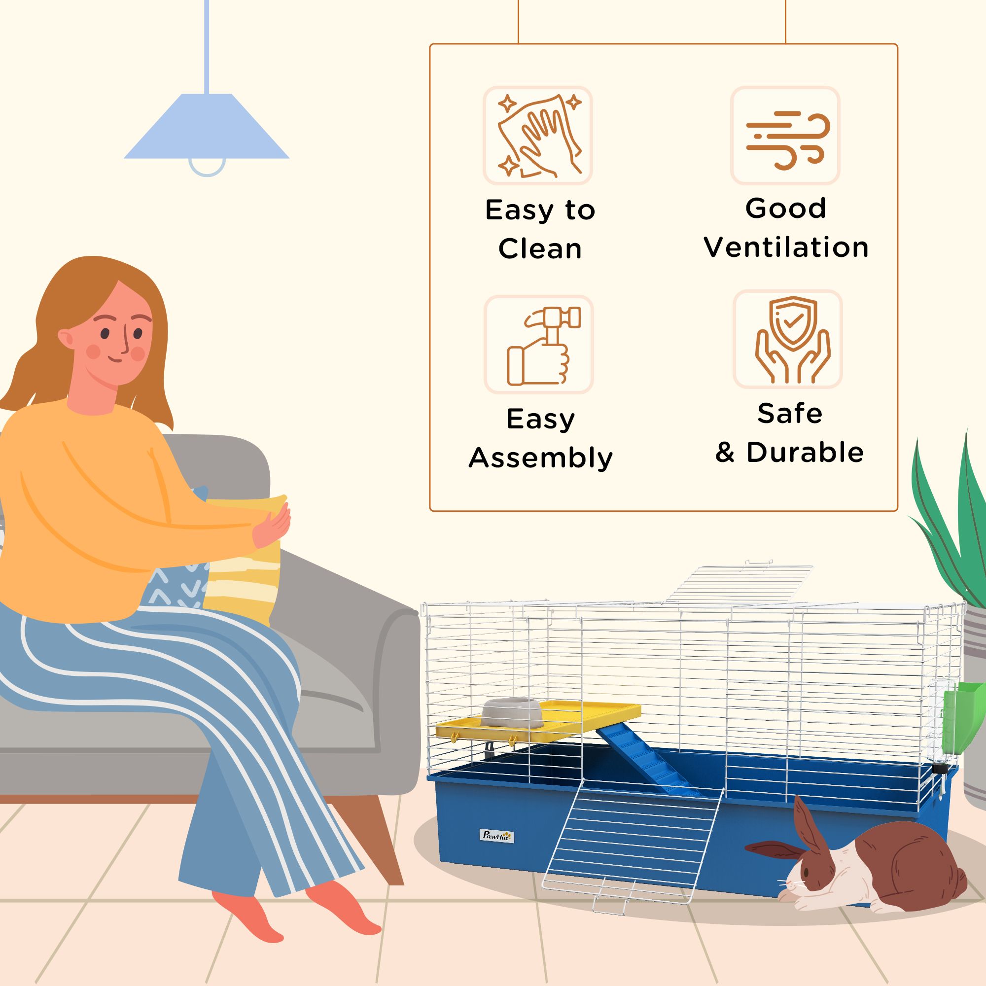 Shelley Chinchillas Small Rabbit Guinea Pig Cage with Platform Ramp - Blue
