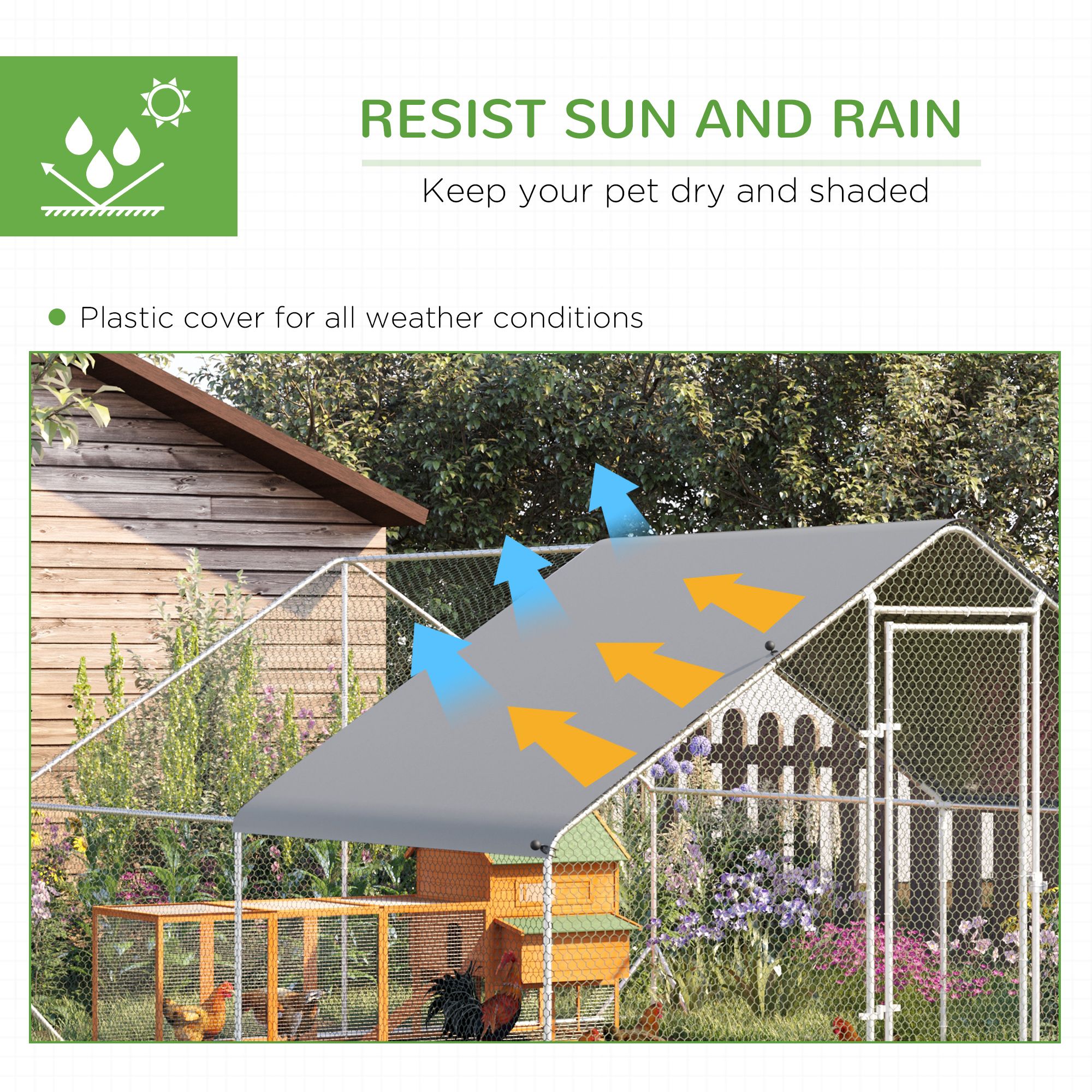 Shelley Spacious Design Chicken Run with Activity Shelf and Cover Walk In Durable - Silver
