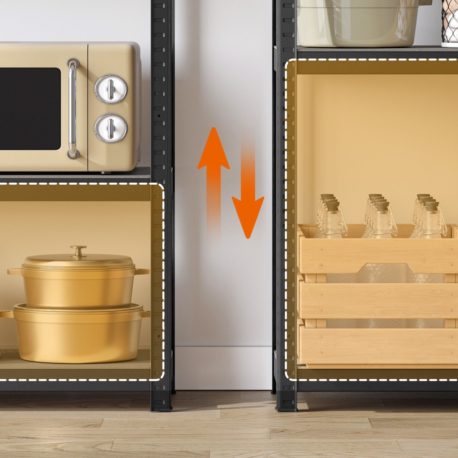 Shelving Unit - FIORIA 4 Tier Steel Storage - Black