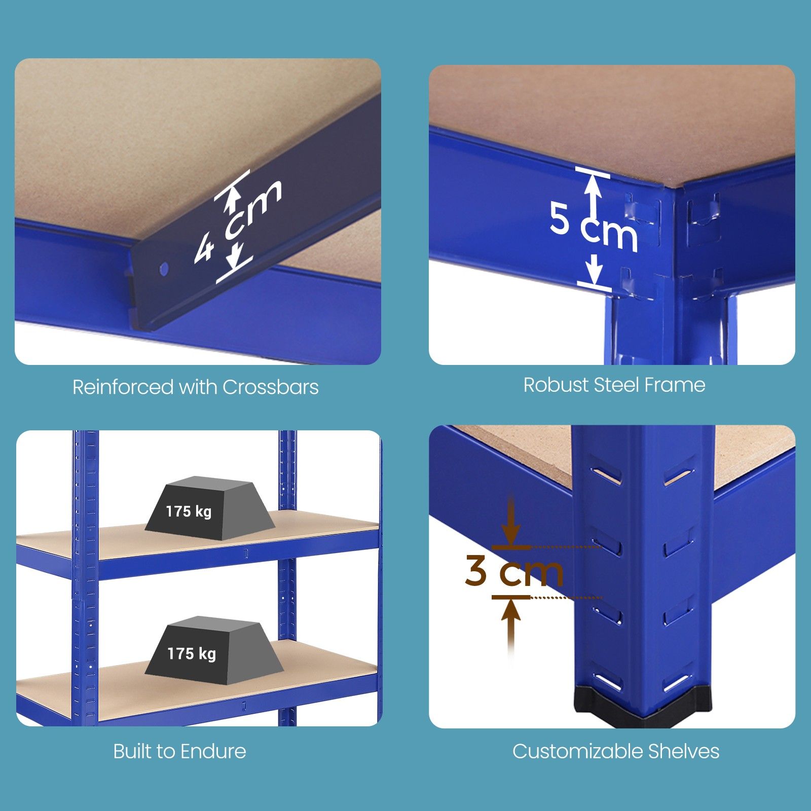 Shelving Unit - FIORIA 4 Tier Steel Storage - Blue
