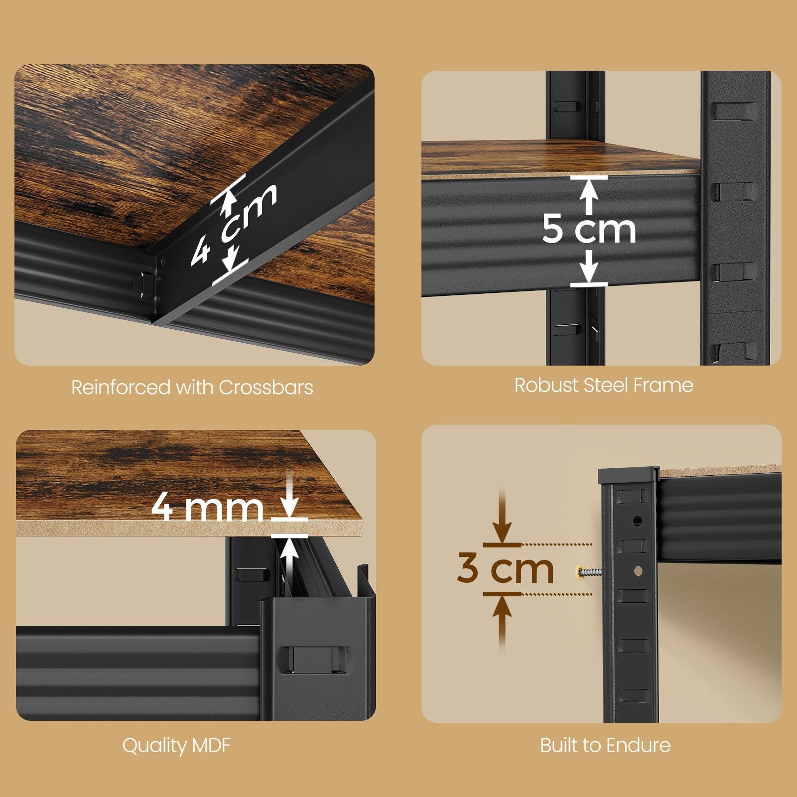 Shelving Unit - FIORIA 5 Tier Rustic Storage Unit 30 x 75 x 150 cm - Rustic Brown and Black