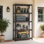 Shelving Unit - FIORIA 5 Tier Steel Storage - Rustic Brown and Black