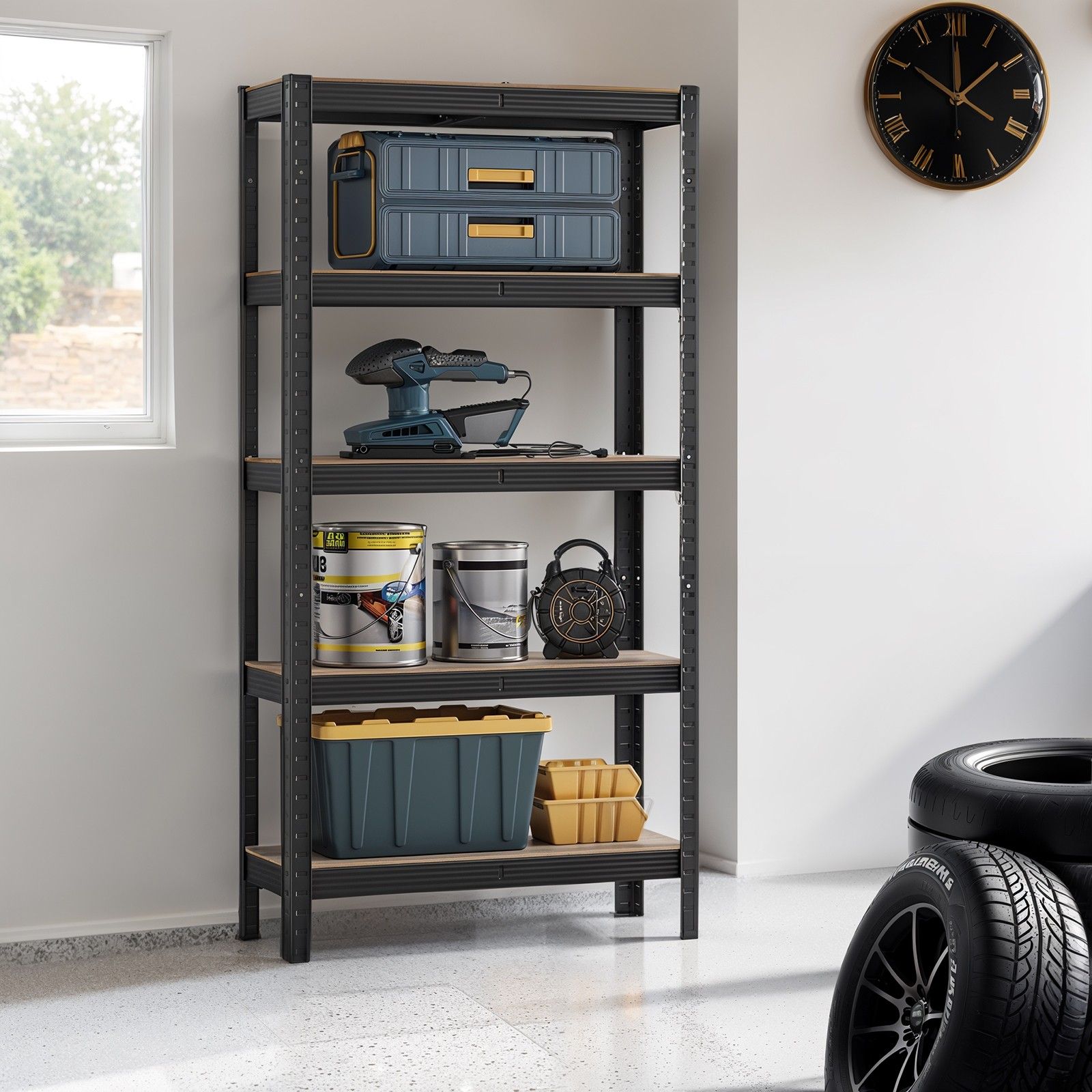 Shelving Unit - FIORIA 5 Tier Storage 30 x 75 x 150 cm Greige and Black