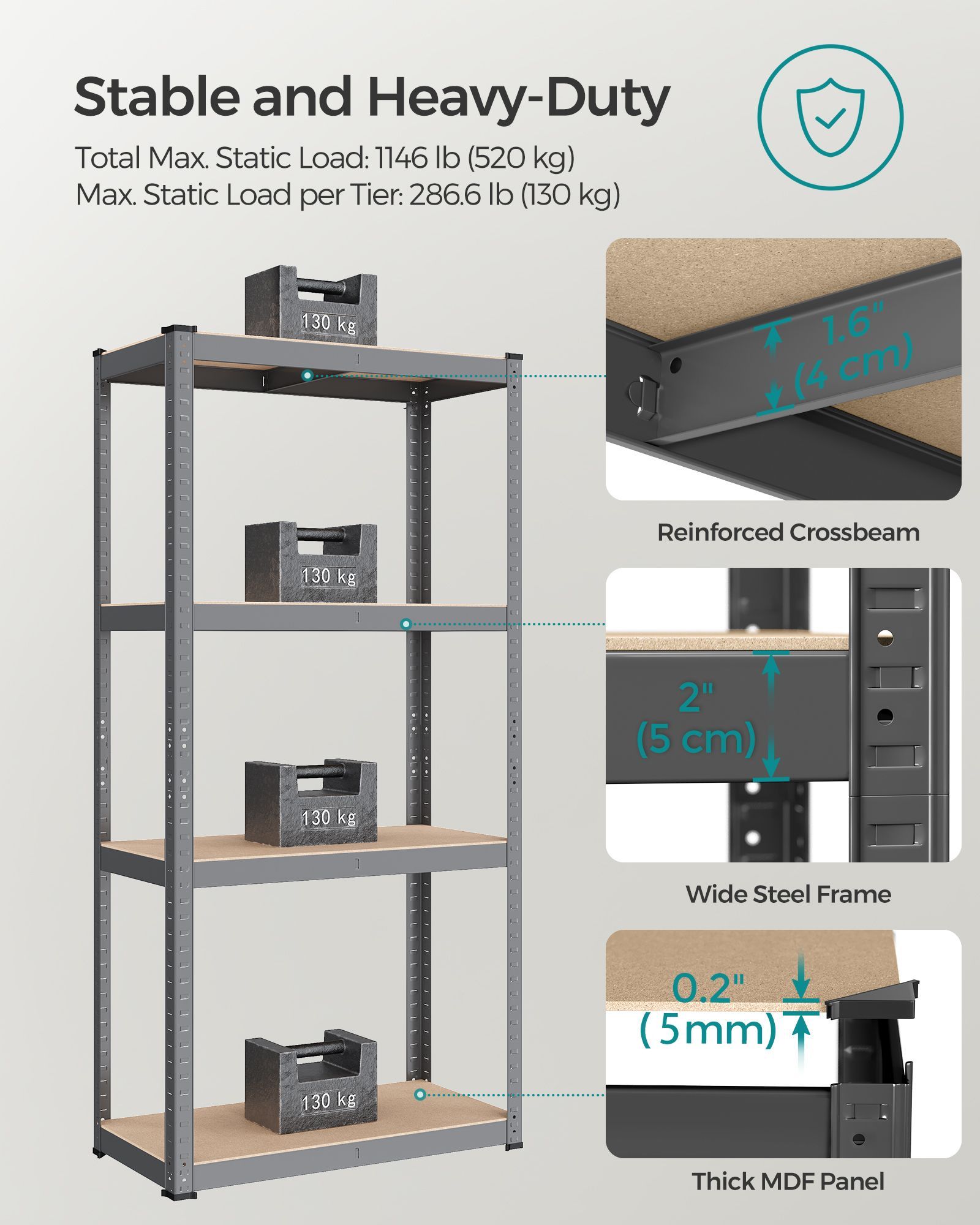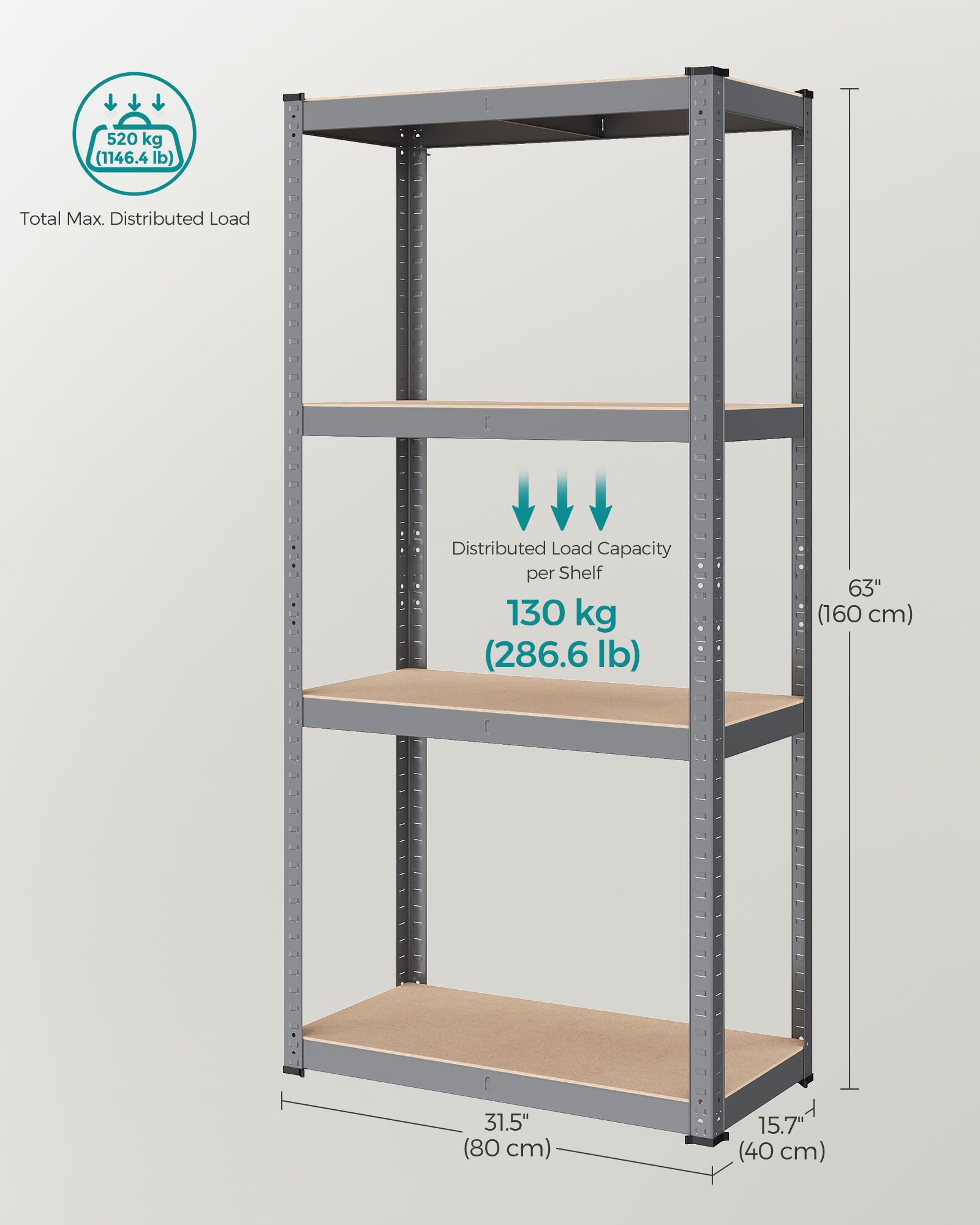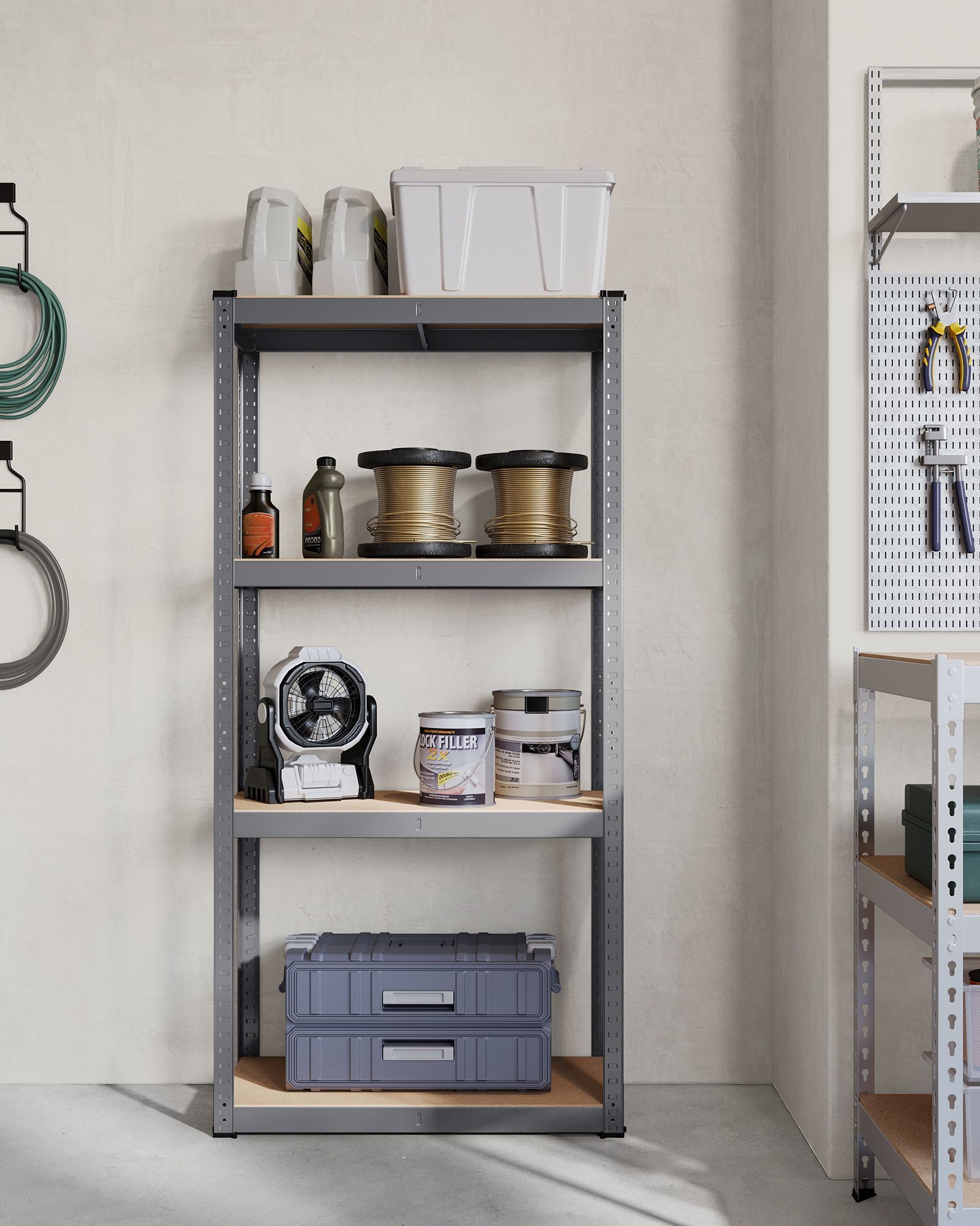 Shelving Unit - TARLIA 4 Tier Steel Storage Shelving - Silver