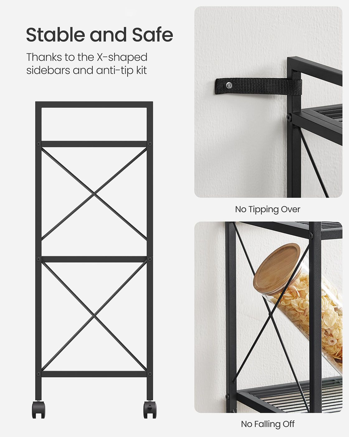 Shelving Unit - ZARRO 3 Tier Metal on Wheels 32 x 60 x 85.5 cm - Black