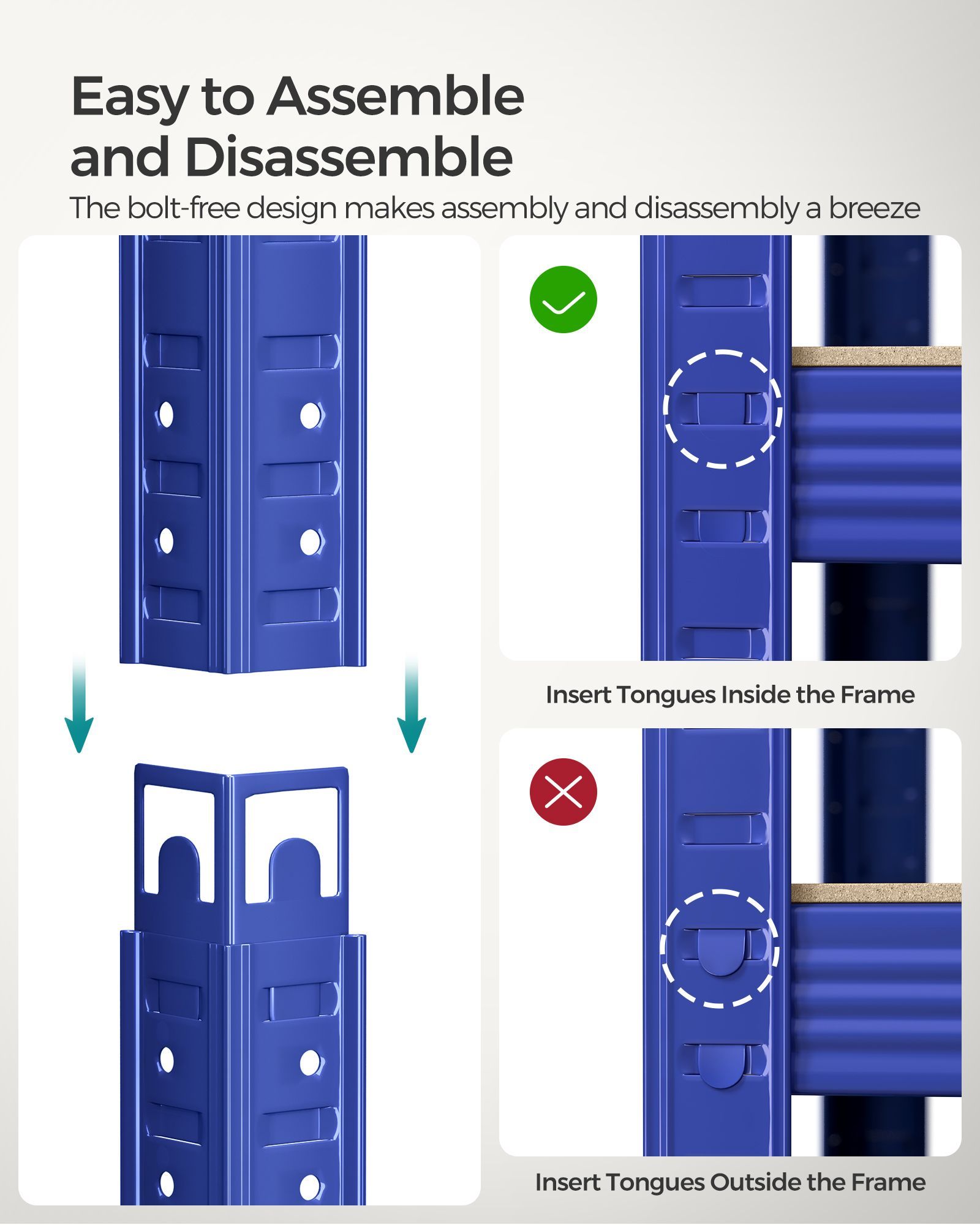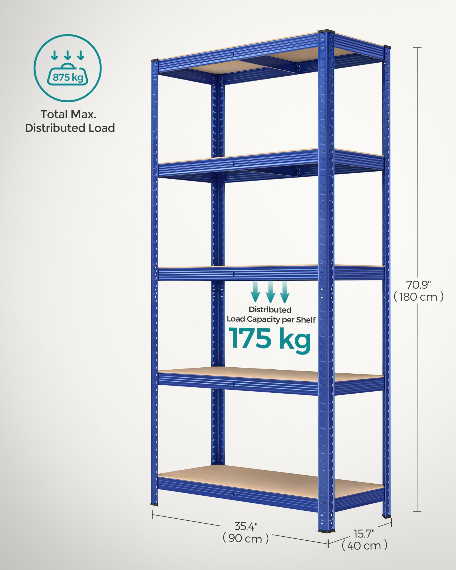 Shelving Units - TARLIA Heavy Duty Steel Shelving - 5 Shelves Unit - Blue