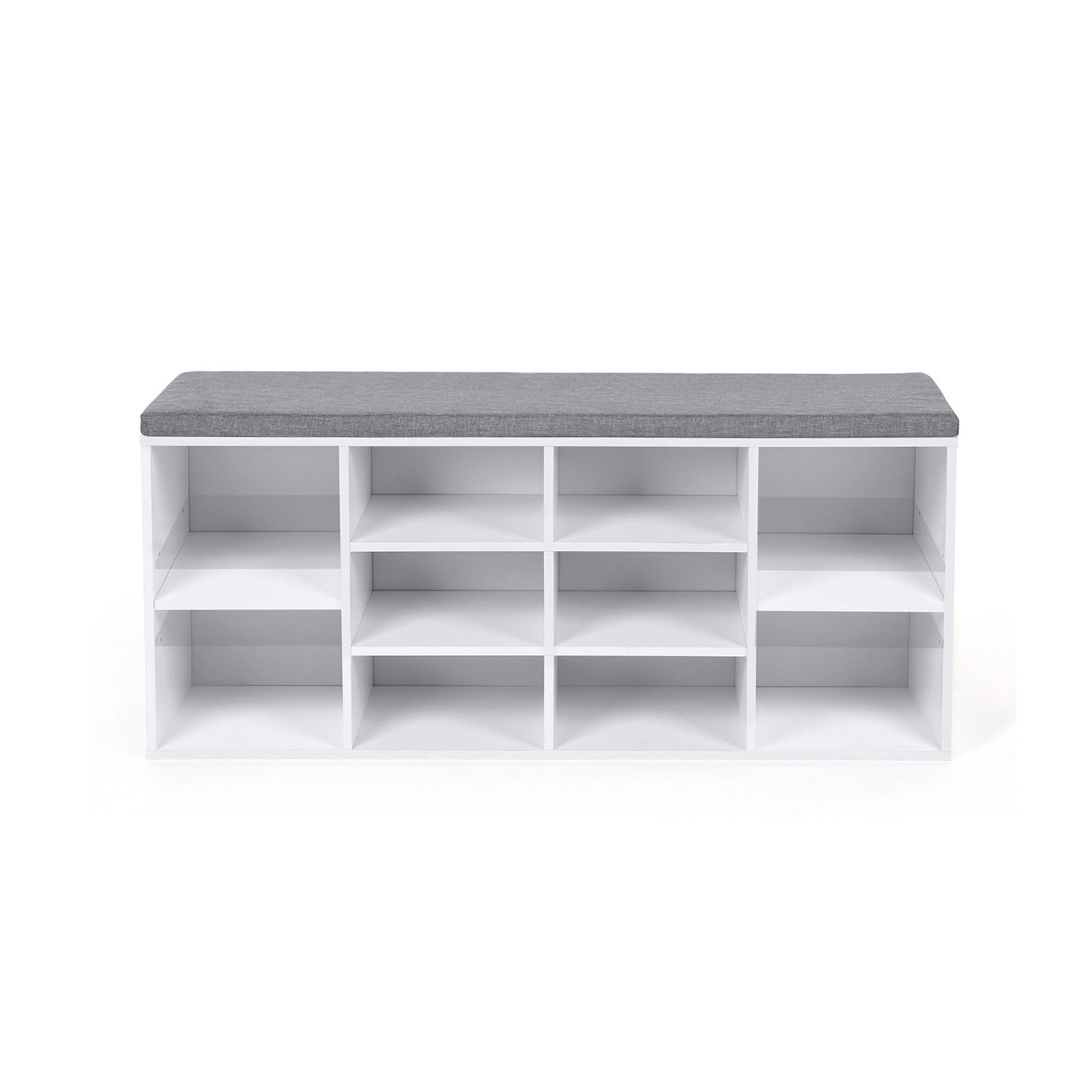 Are you still distressed about how to store your shoes orderly? Do you want to make your hall tidy and organized? VASAGLE shoes storage cabinet is the ideal solution for you! Made of high quality chipboard, which meets the E1 degree standard, this unit has a bearing weight up to 150 kg. Filled with sponge and sesame as the seat cover, the cushion is breathable, easy to clean and removable. 10 grids to organize your shoes and other items. This storage cabinet is suitable for use in the hall, bedroom, balcony and other places. This product can also be placed vertically and used as storage holder or rack. Buy this unit and it will bring more convenience to your life! Parameters:- Dimensions: 104 x 30 x 48 cm (W x D x H)