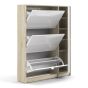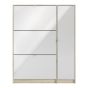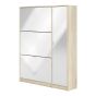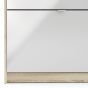 Shoe cabinet w. 3 tilting doors and 2 layers + 1 door - Oak structure White high gloss
