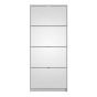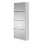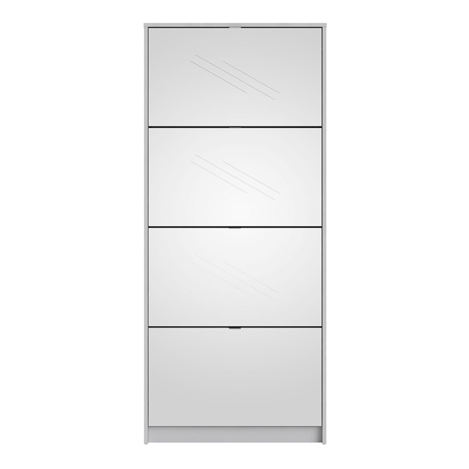 Shoe cabinet w. 4 mirror tilting doors and 2 layers - White